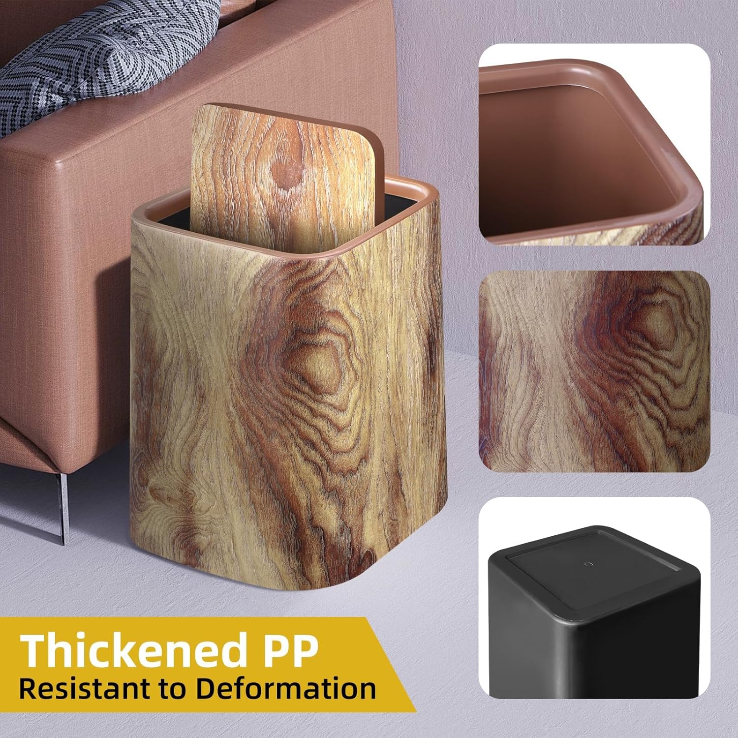 - Durable & Easy to Clean - Thickened PP rubbish bin, resistant to deformation and easy to clean.