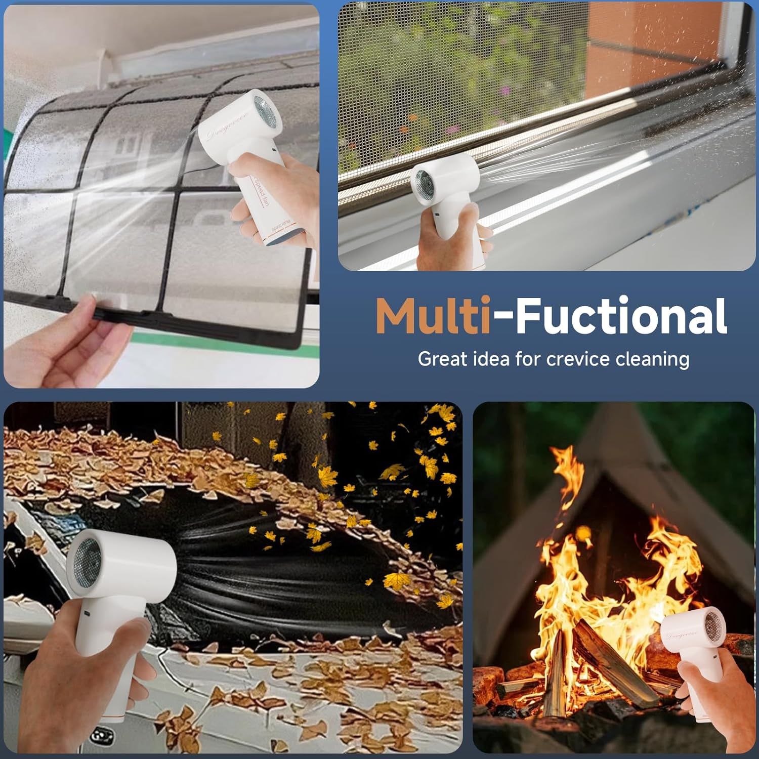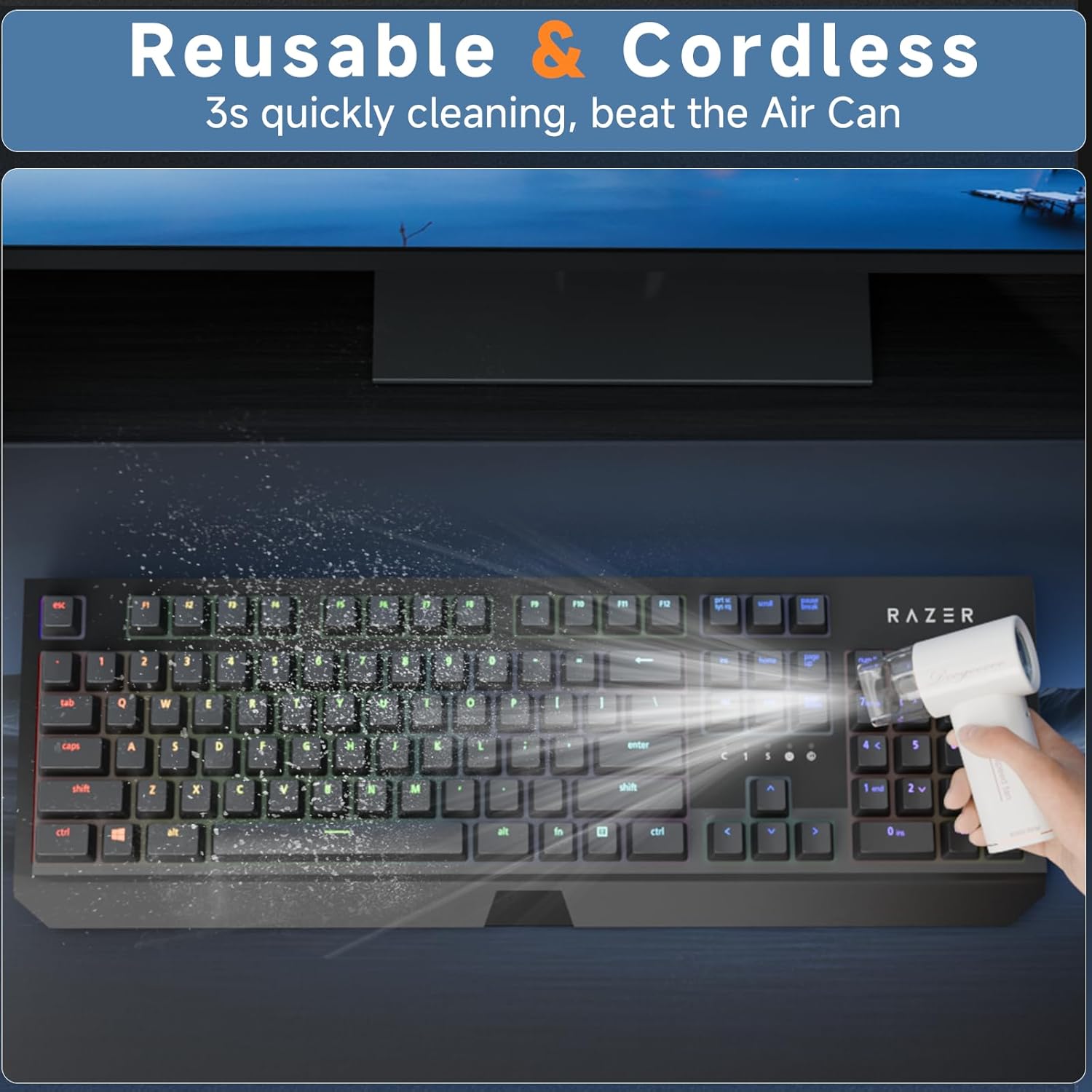 - [3s Efficient & Fast cleaning] - With 10 fan blades and aviation-grade motor provided turbo ultra-high speed, it can 100% efficiently clean in keyboard, computer, air condiontal and all corners. Only 3s to quickly clean all dust, hair, etc.. No longer worrying about the corner and dust that cannot be cleaned.
