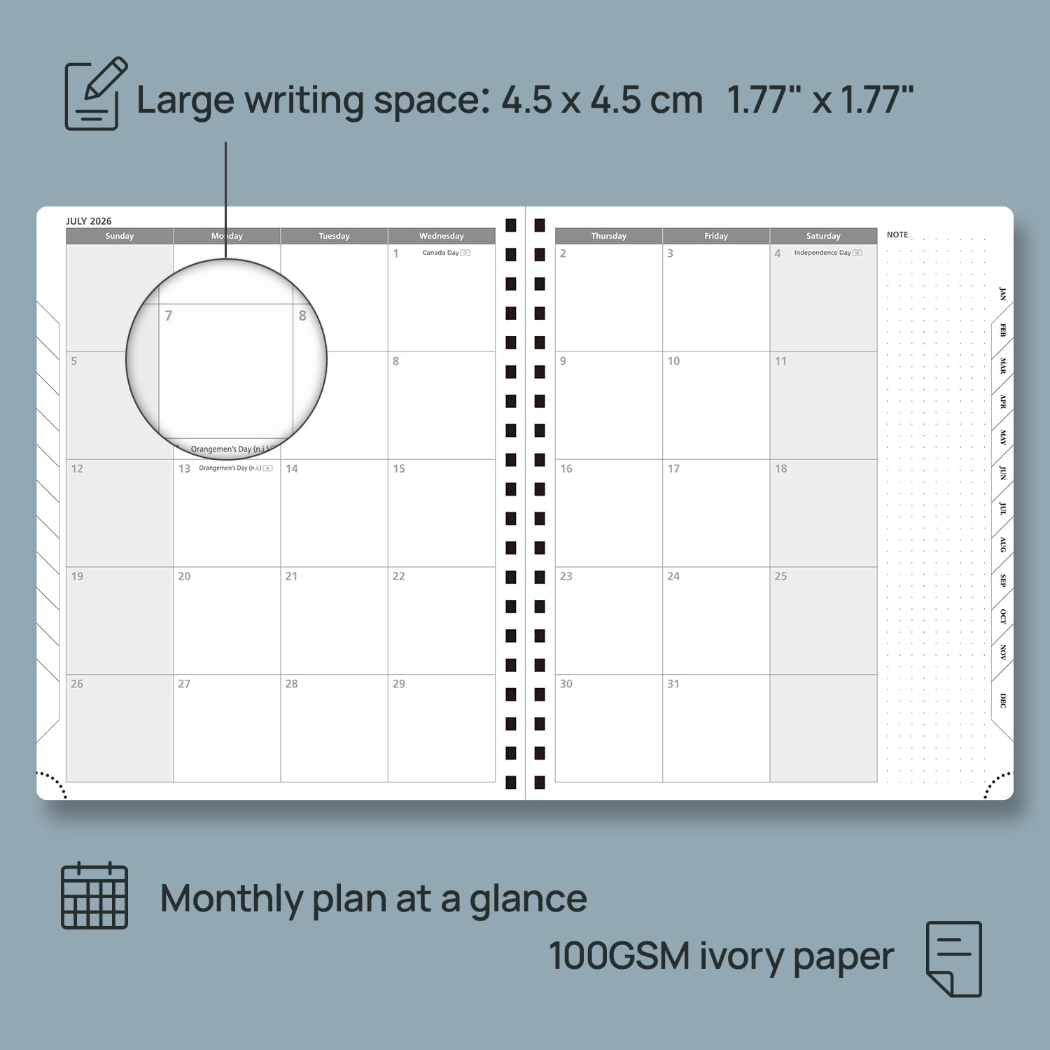 - EXTRA PAGES: This 2026 agenda book planner also contains "2026-2027 Yearly Overview" Page + "2026-2027 Holiday & Calendar" Page + 3 Contact Pages +1 Password Page +53 Horizontal line page + 7 Dotted Notes Pages for jotting down your ideas, thoughts or any other happy things in detail.