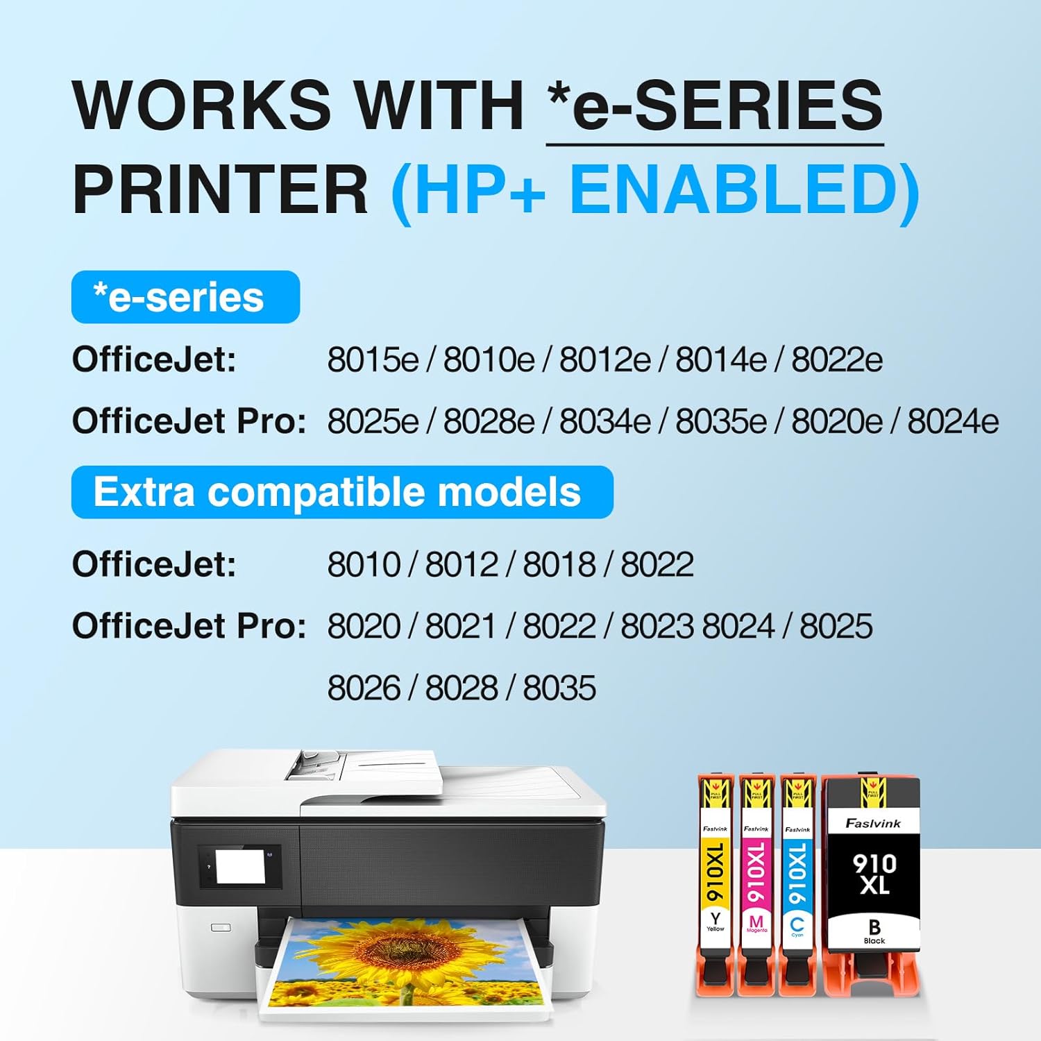 - 910xl ink cartridges for hp printers: Compatible with HP OfficeJet Pro 8020 / 8025 / 8030 / 8035 / 8028; OfficeJet 8010 / 8015 / 8018 / 8022 Printers. Compatible with hp officejet 8020 ink cartridges.