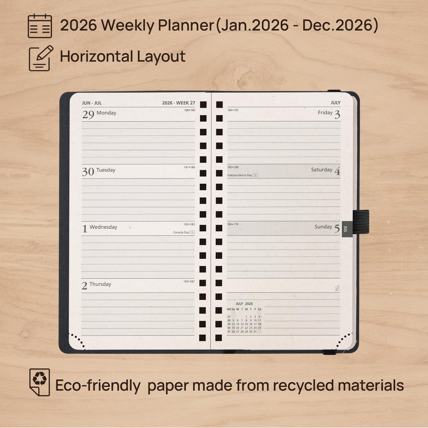 - Pocket Size - The size is 3.5" x 6.5", small planner for purse, comfortable to carry and use. This planner covers the entire year of 2026 to keep your busy daily routine organized.