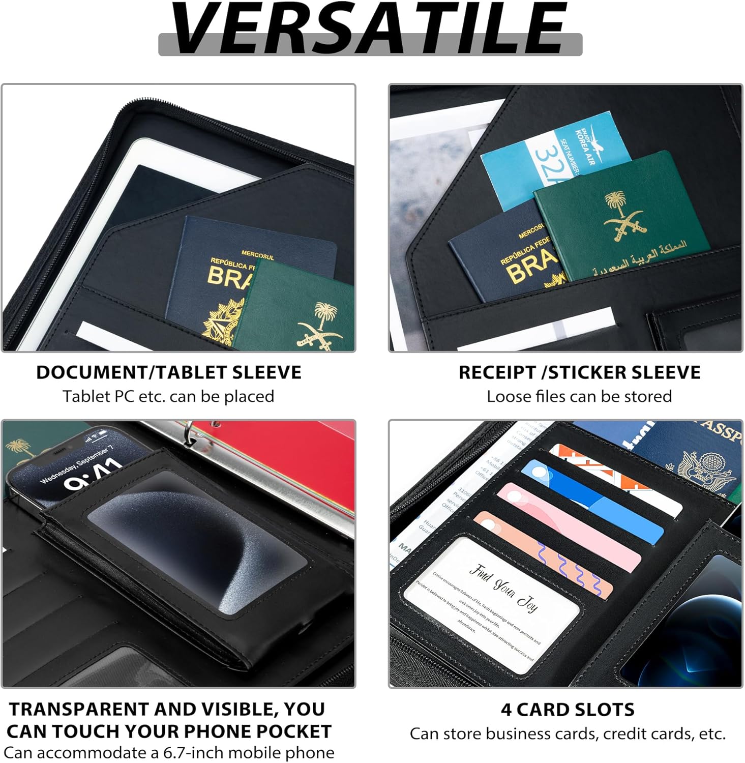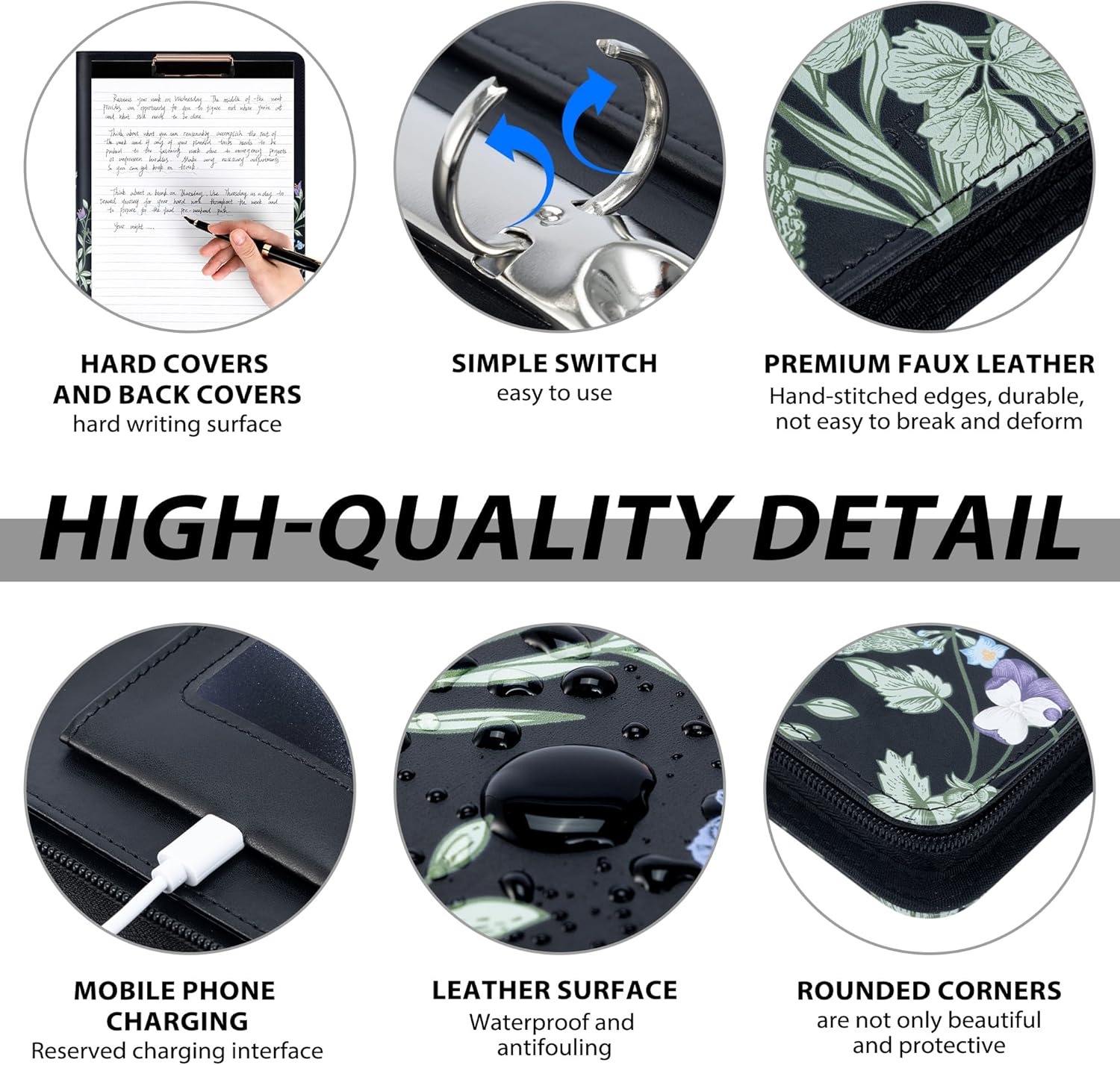 - Multifunctional Clipboard & Organizer Portfolio: Clipboard, Binder & Secure Storage! Seamlessly combine a sturdy clipboard (holds 80-100 sheets), a 1 inch 3 ring binder (fits 175+ papers), a zippered main compartment, and a dedicated tablet sleeve in one sleek leather portfolio. Never juggle separate tools again - manage documents, notes, devices, and essentials effortlessly