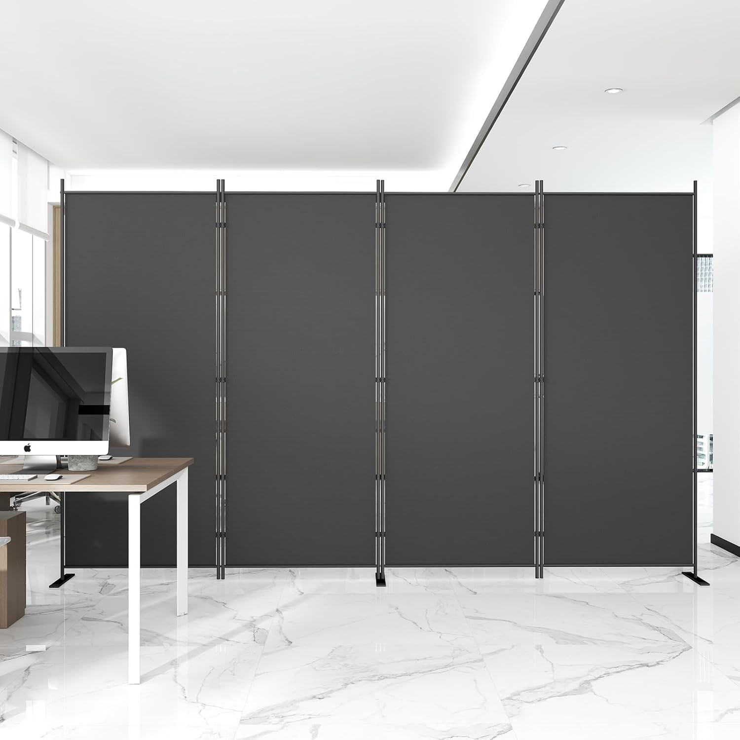Helios&Hestia 4-Panel 6 ft Tall Indoor Folding Room Divider, Portable Privacy Screen, Freestanding Partition Separator, Temporary Wall Separation for Bedroom, Office, 136" W X 71" H, Dark Grey