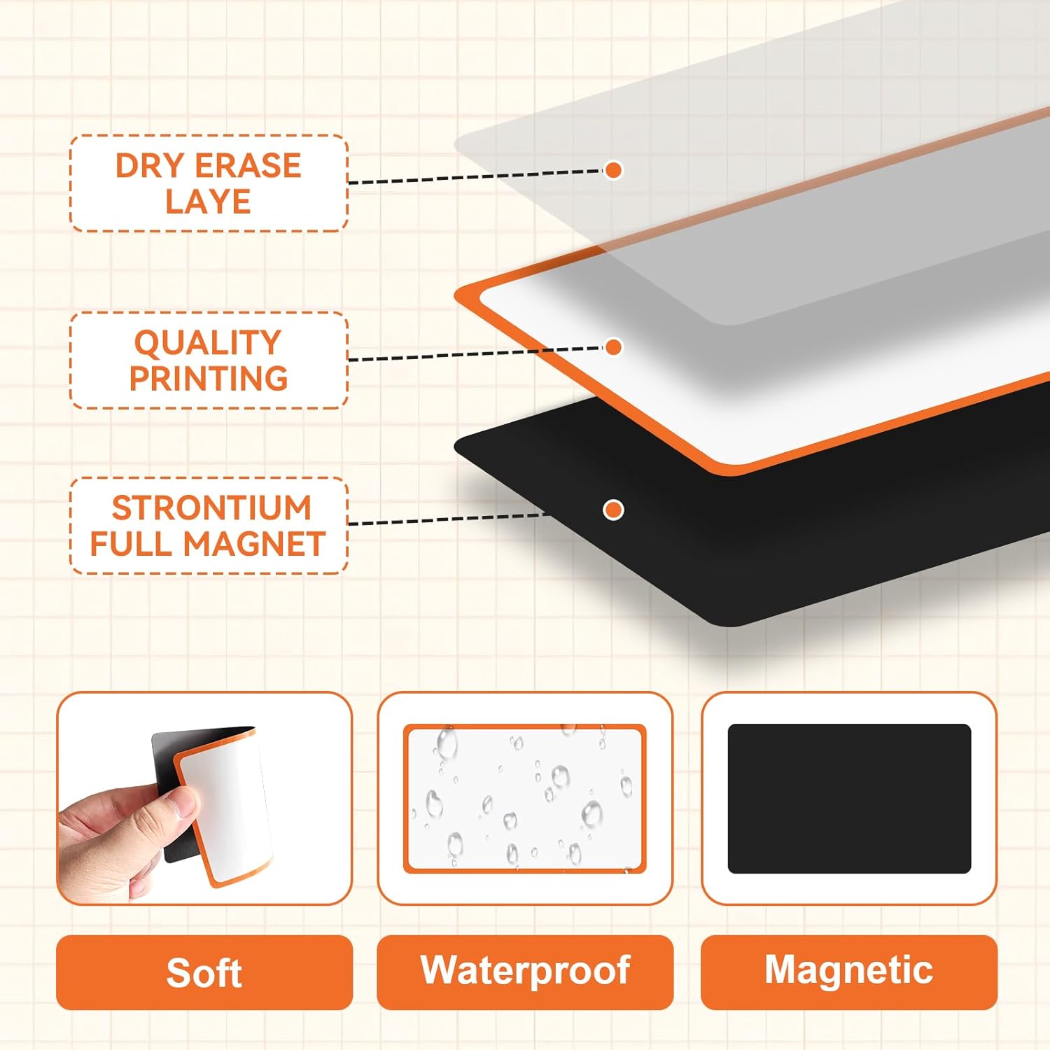 - Strong Magnetic Labels – These magnetic dry erase labels securely adhere to refrigerators, metal cabinets, or whiteboards, ideal for reminders, lists, and classroom organization.