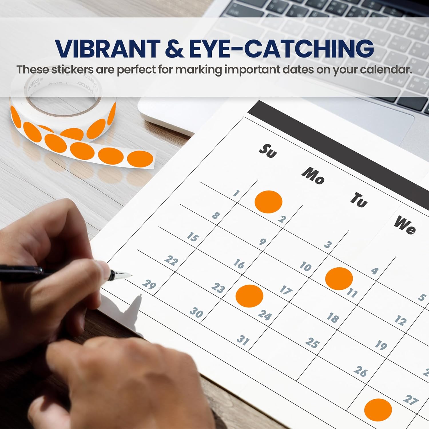Perco Orange 1-Inch Round Circle Dot Sticker Labels with Removable Adhesive – 1,000 Labels per Roll – Versatile, Vibrant Colors, Reliable Hold, No Residue, Perforated for Convenient Use – Made in USA