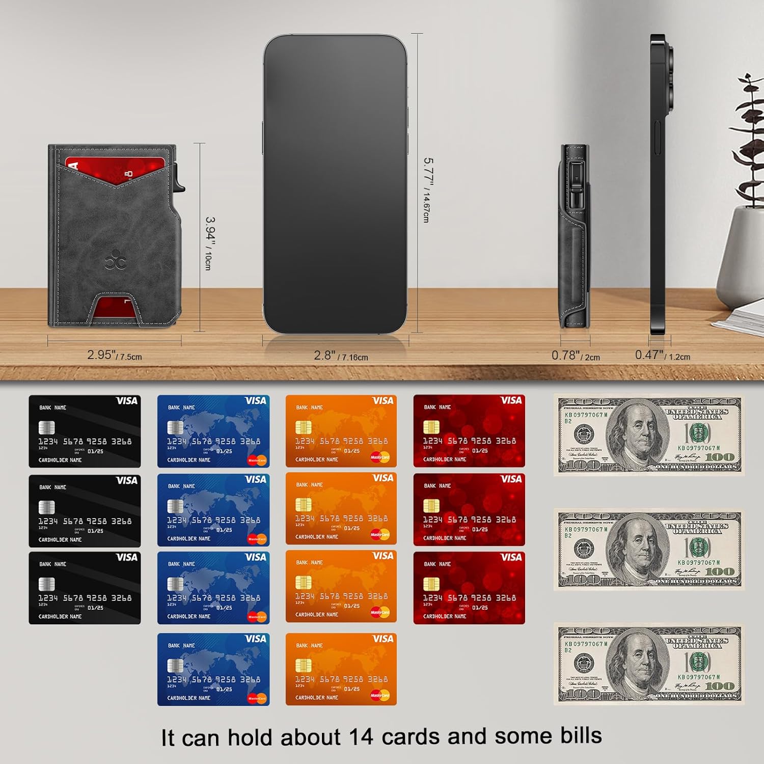 Wallet for Men Wallet with Slim Pop Up Card Holder 9-13 Cards, Bifold Minimalist Smart Wallet RFID Blocking Credit Card Holder with ID Window & Stretchable Cash Slot Compact Metal Aluminum Card Case