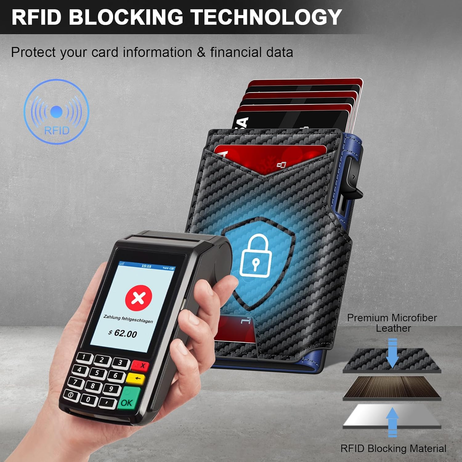 - RFID BLOCKING: The RFID Card holder of this metal wallet for men blocks unauthorized scans of your credit cards, debit cards, and driver’s license, providing maximum protection for your private information.