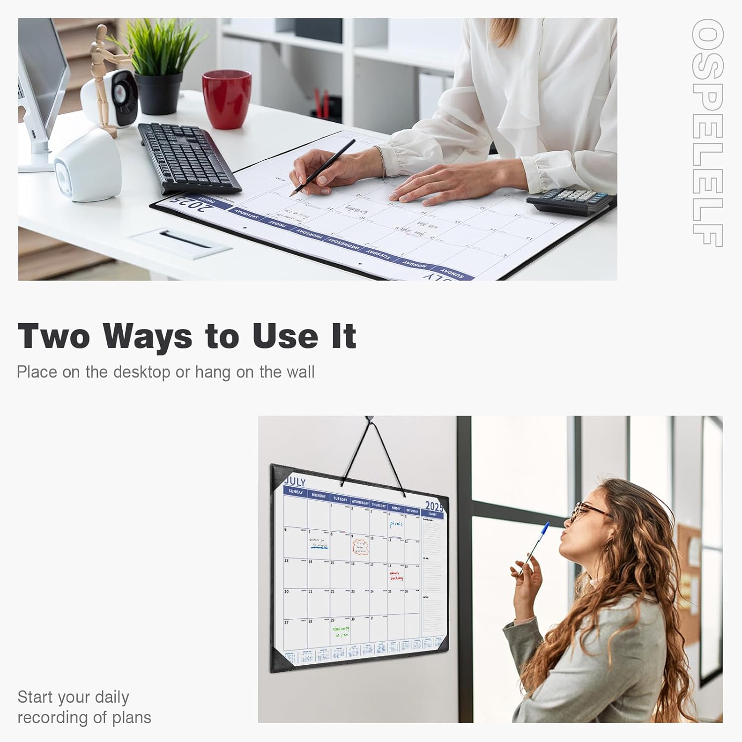 Ospelelf Large Desk Calendar 2025-2026 with PU Leather Pad, 18 Months Planner Pad from July 2025 to Dec 2026, 22" x 17" Wall Calendar with Protective Cover for Home or Office, Black