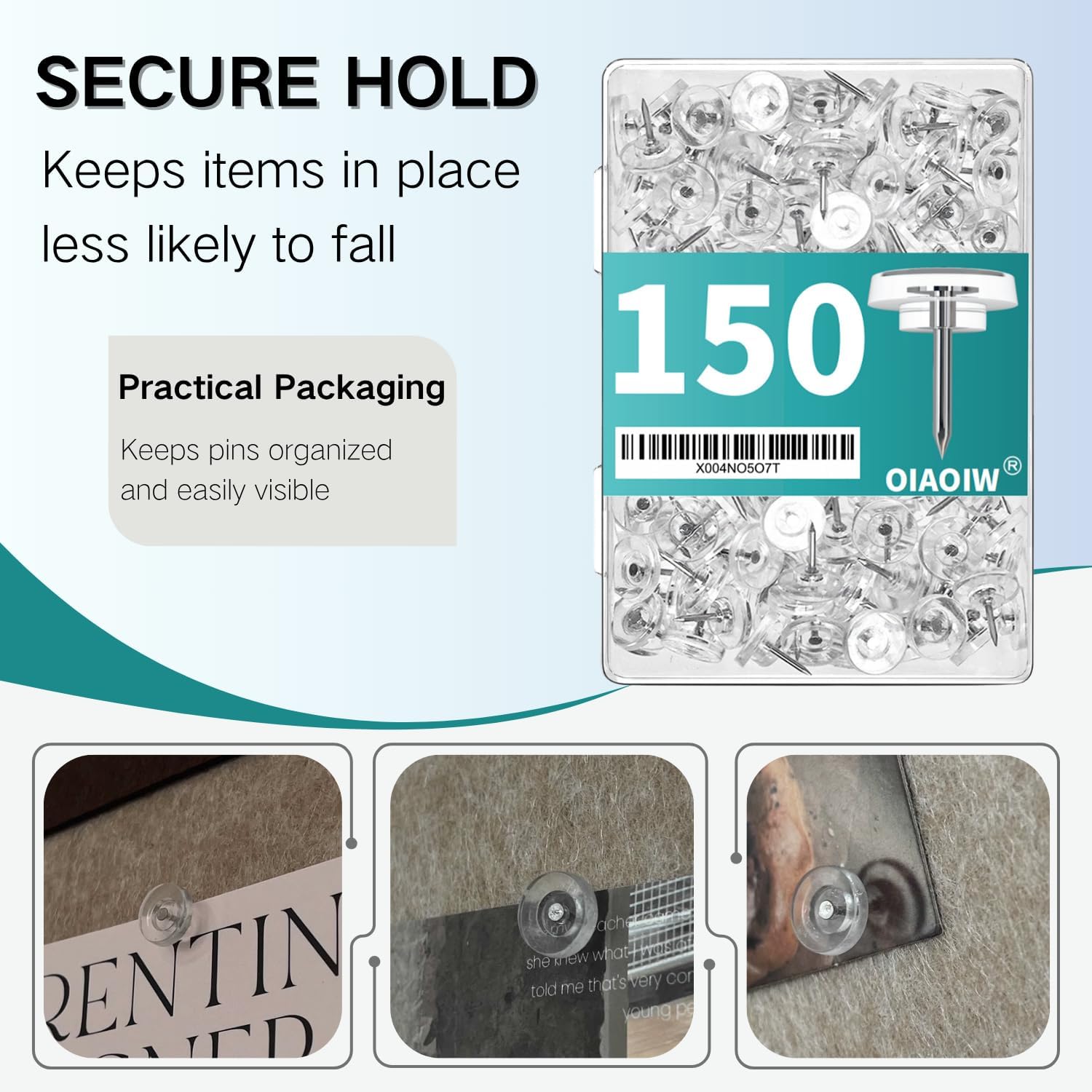 150 PCS Flat Clear Short Push Pins for Wall Thumb Tacks for Walls Flat thumbtacks Push pin for Bulletin Board Shadow Box Display Thumbtack for Cork Board