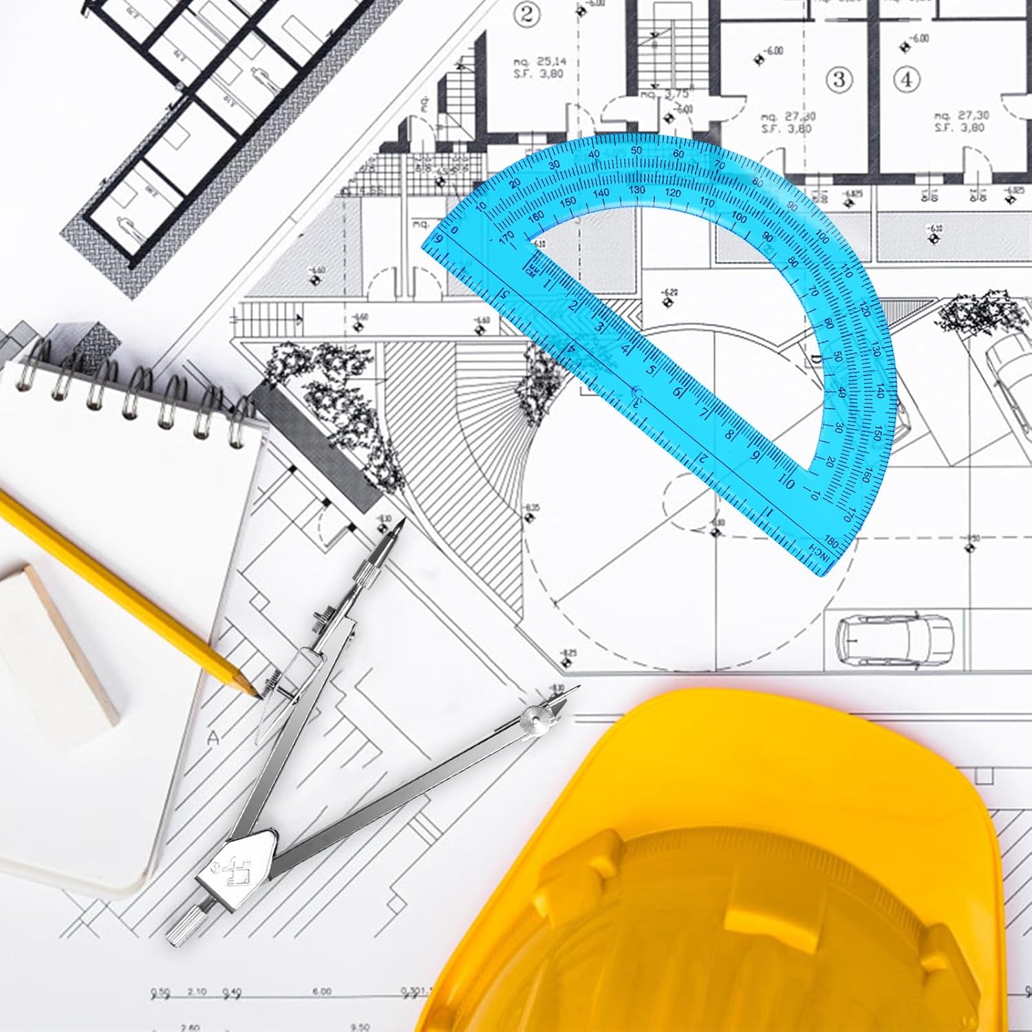 Students Geometry Math Set, Drawing Compass and 6 Inch Transparent Swing arm Protractor 180 Degree Math Protractor (Blue)