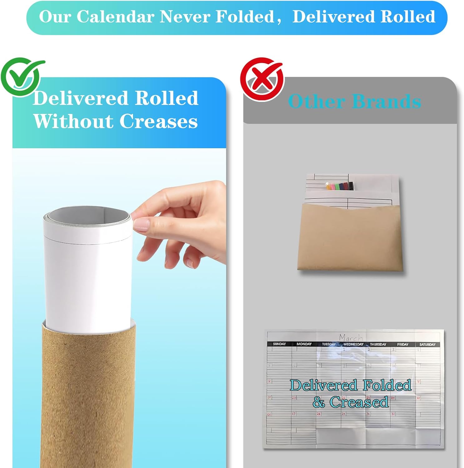 - 【Jumbo Dry Erasable Calendar - No Creases】Please note that this giant planner calendar is not folded but rolled into the packaging box to prevent creasing. Our calendar has large enough blank spaces for easy editing of daily plans.