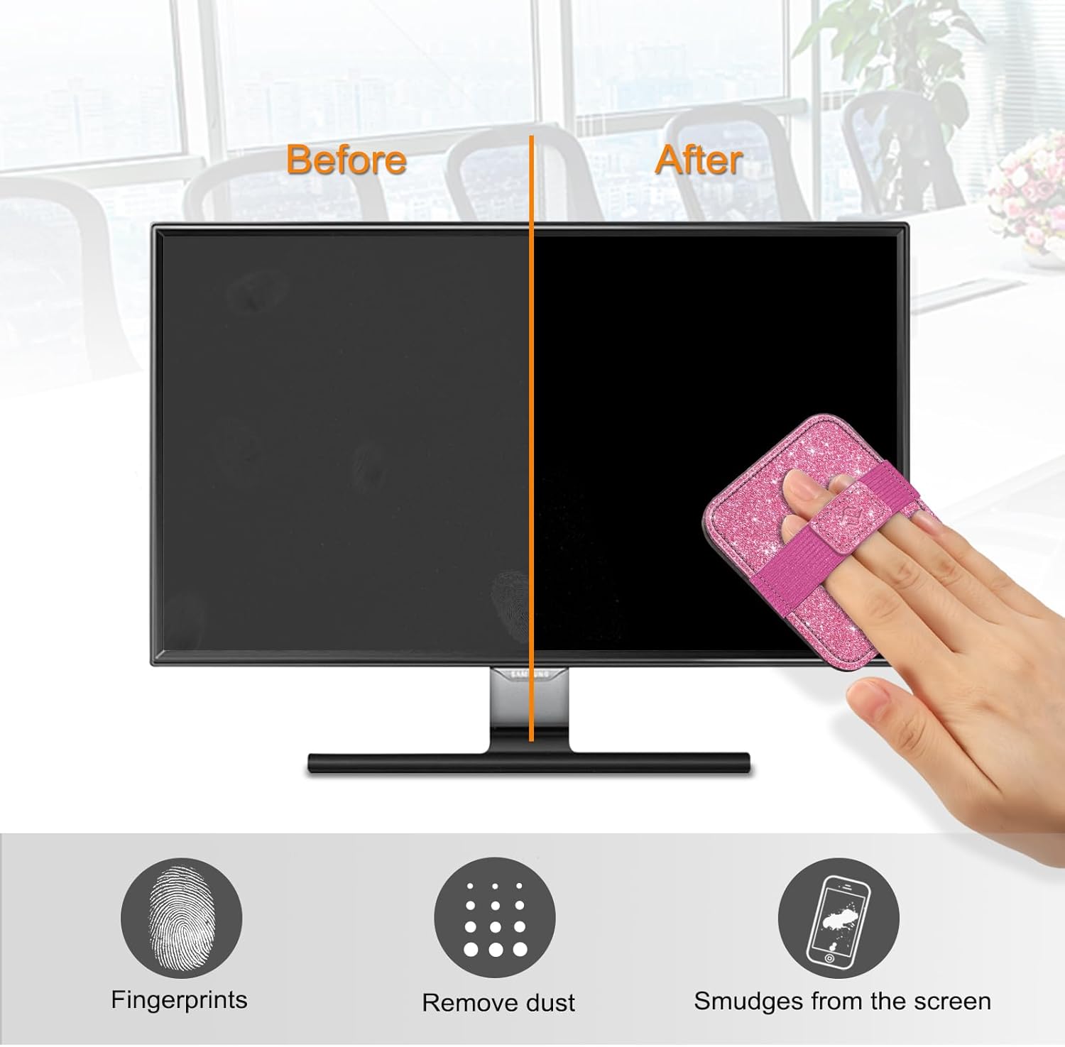 - Features elastic handle strap for any hand size, easy to keep hold of the clean pad while wiping across the screen.