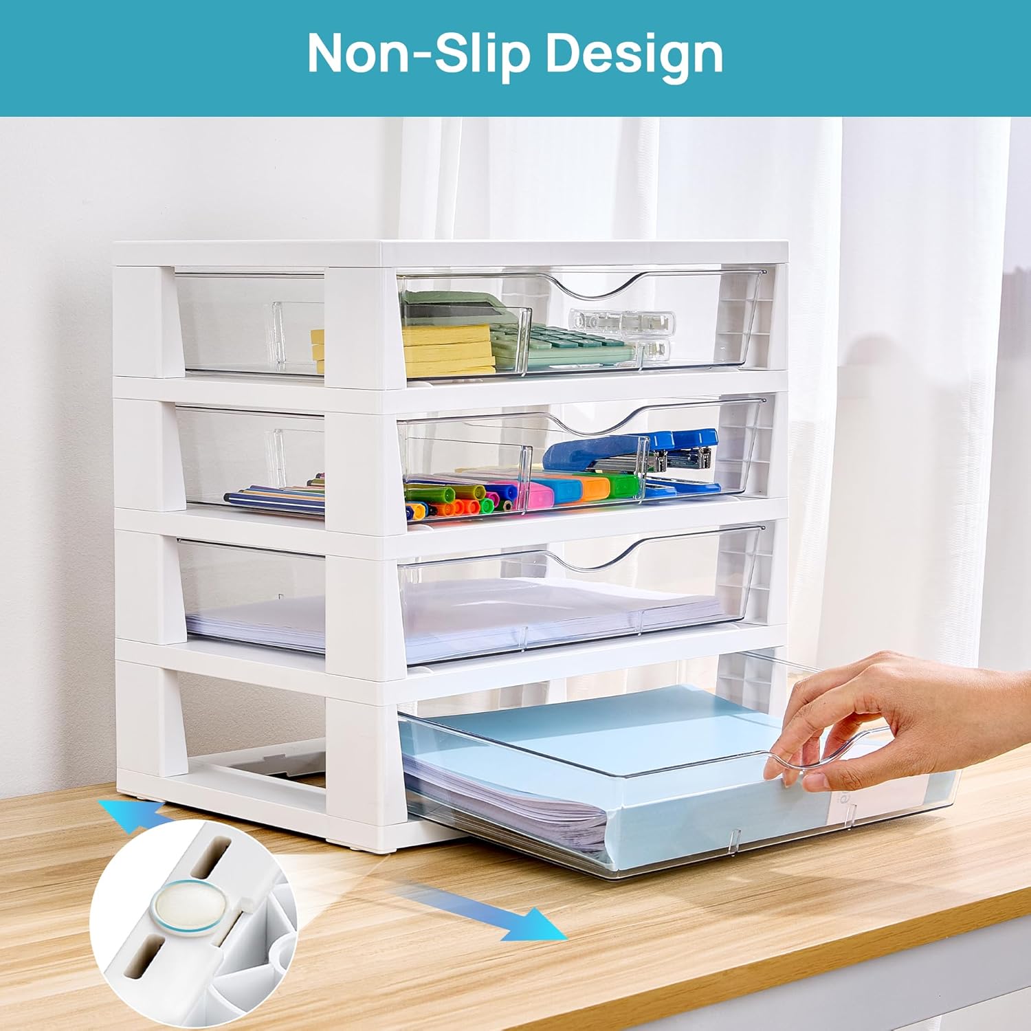 - Easy Assemble, Sturdy and Durable--No tools required for assembly—set it up in just 2 minutes. The sturdy structure of this desktop organizer ensures long-lasting use, while the built-in stopper prevents drawers from sliding out, keeping your paper organizers and supplies safe and secure. Perfect for both office and home office organization and storage