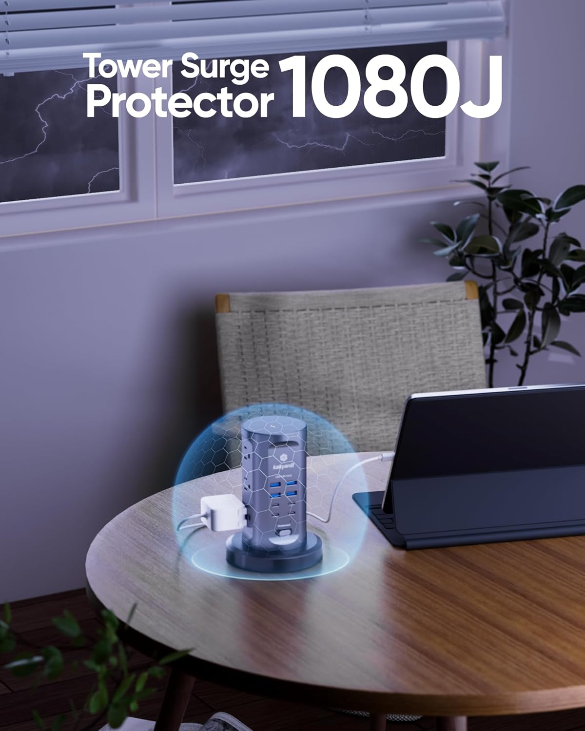 - 1080J Surge Protector Power Strip: Defend your electronics with industrial-grade safeguards