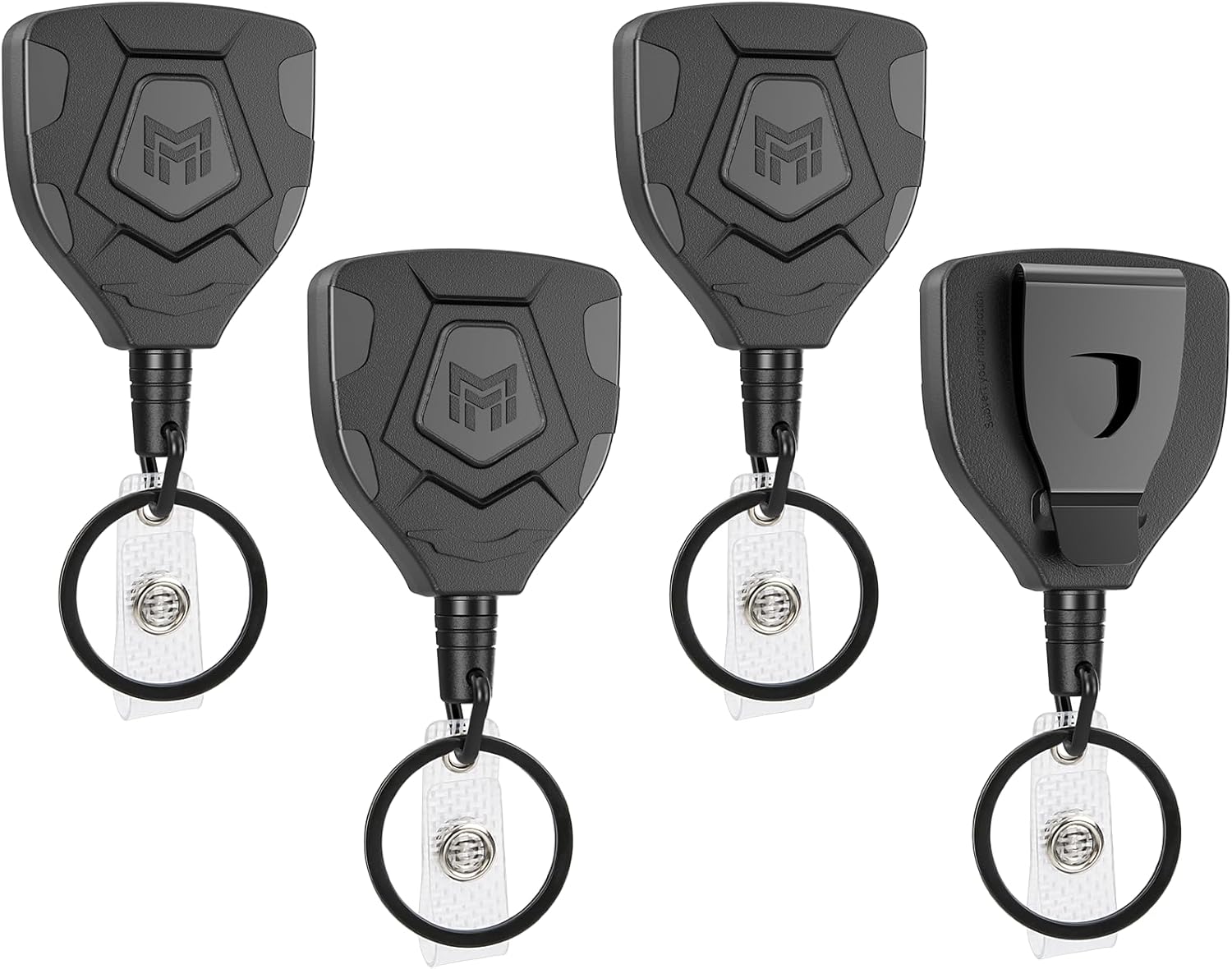 MNGARISTA Heavy Duty Retractable Keychain with Belt Clip, ID Badge Reel Key Chain, Badge Holder with 31.5' Steel Cord and Key Ring, 9.0oz, 4-Pack
