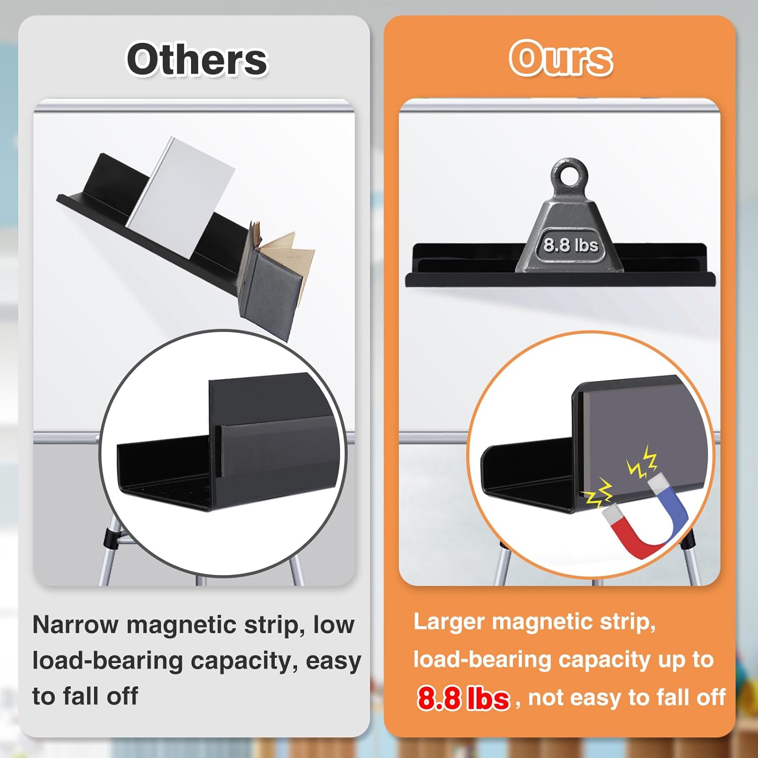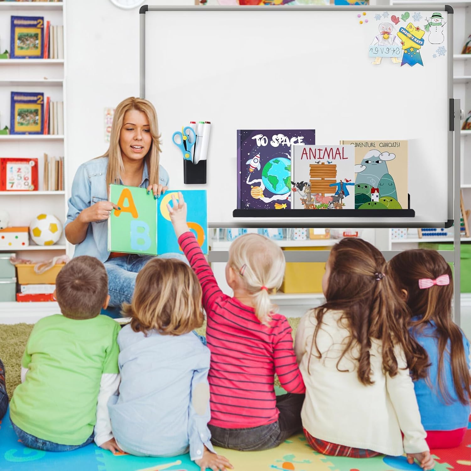 - Ideal Size: The magnetic display shelves measure about 17×2.2×2in, which can hold more books, as well as rulers, board erasers, etc.