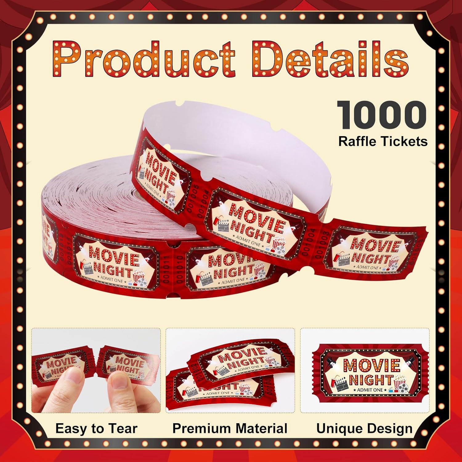 1000 Pcs Carnival Movie Tickets Roll Movie Night Theme Party Decorations Raffle Tickets Party Entry for Events Carnival Favors Supplies