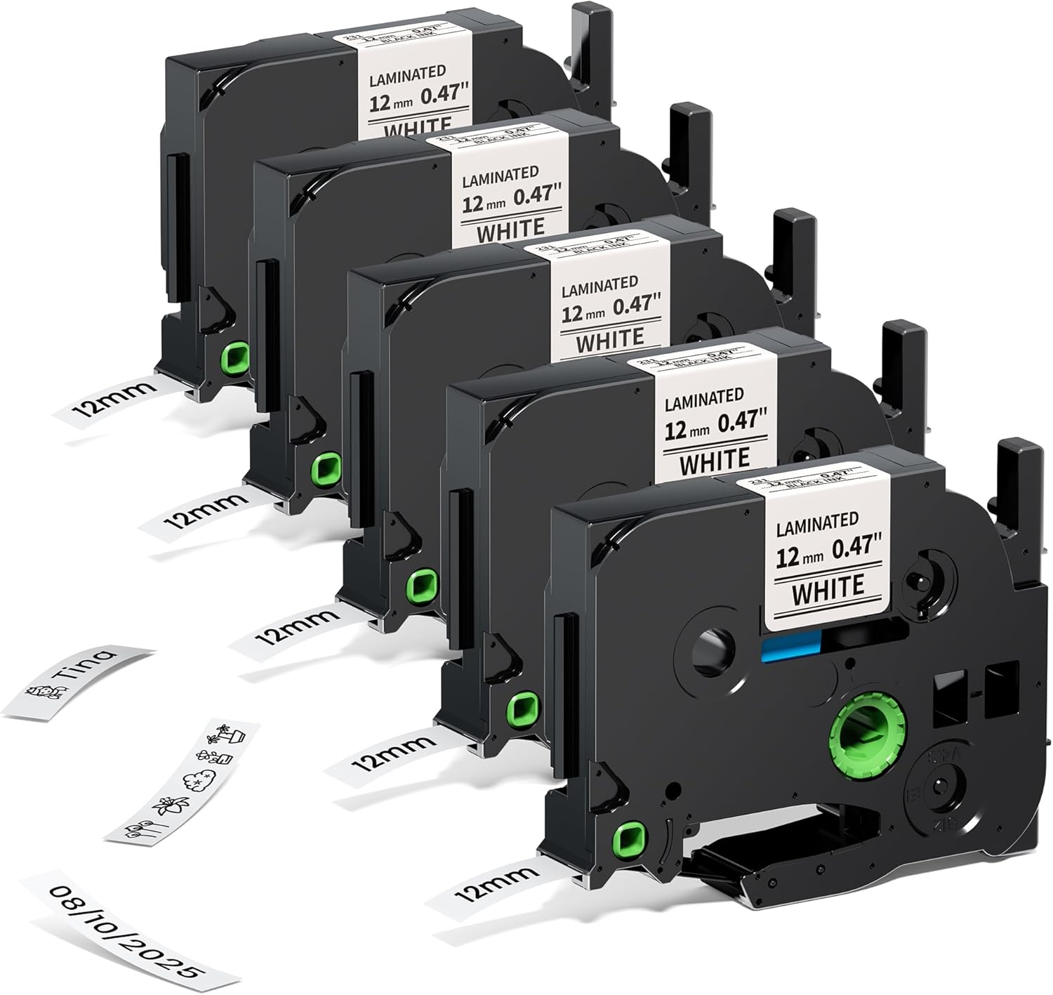 - 【Replacement for P Touch Label Tape Durable and Non-fading】Label maker tape refill 0.47 and Compatible with brother label maker tape 12mm 0.47 white won't fade even when exposed to sunlight, won't flake or curl over time. 1/2 white label tape strong adhesion, water withstand, wear withstand, corrosion withstand, high and low temperature withstand, grease withstand