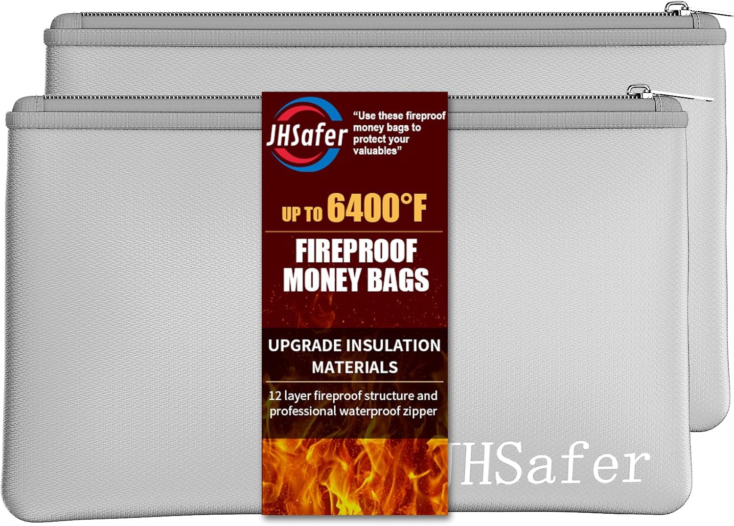 6400℉ Fireproof and Waterproof Money Bags 2pcs with Zipper,11''x6.3'' Fireproof Cash Bag with Zipper,Fireproof Wallet Envelope Safe Pouch Fireproof Bags for Cash Passports Keys Jewellery (Silver)