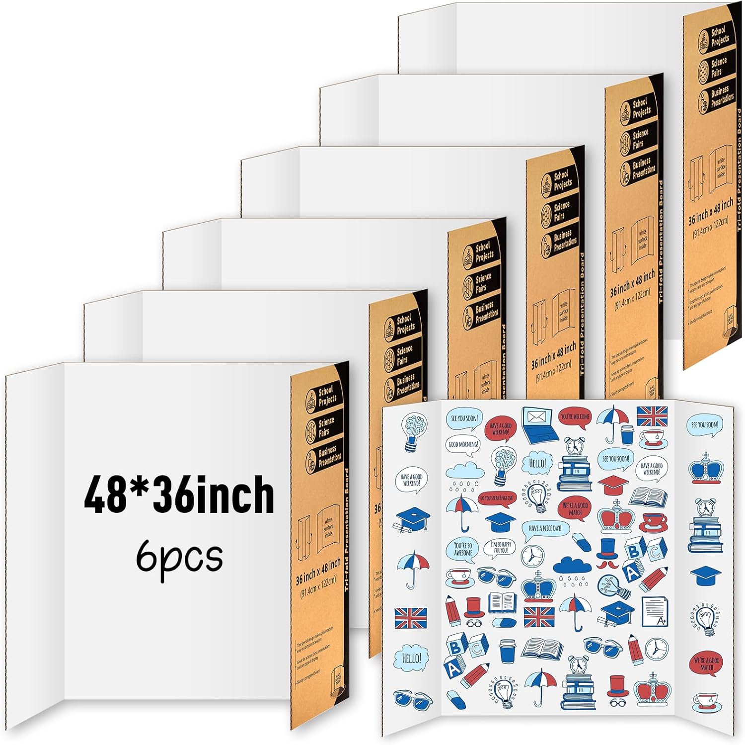 6 Pack Trifold Poster Board 48" X 36", IKAYAS Single sided White Poster Boards, Science Fair Display Boards Posterboard Foamboard for Mounting, Prints,Art,Display,Projects Classroom Supplies