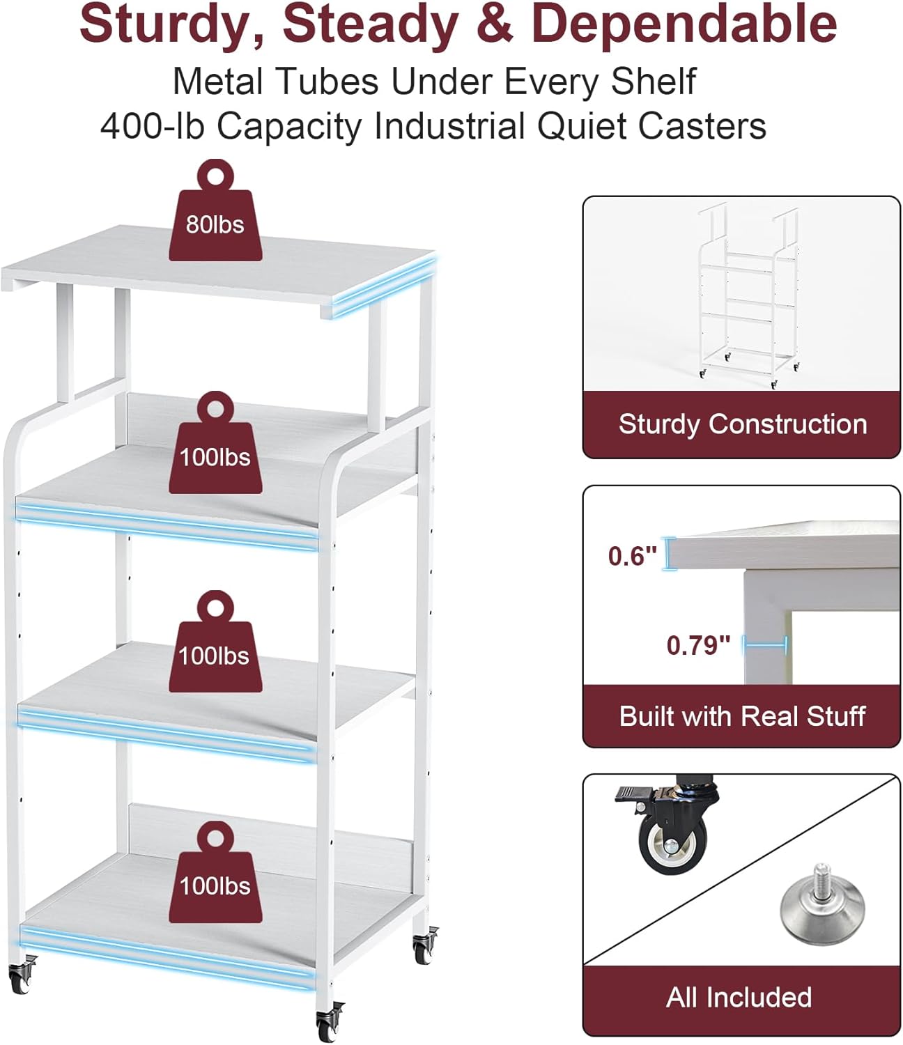 - 【Locking Wheels & Feet】Both adjustable feet and heavy-duty wheels (instead of plastic ones) are included. Use the feet for stationary placement, or attach the wheels to glide it around. Plus, 2 of the 4 wheels are lockable.