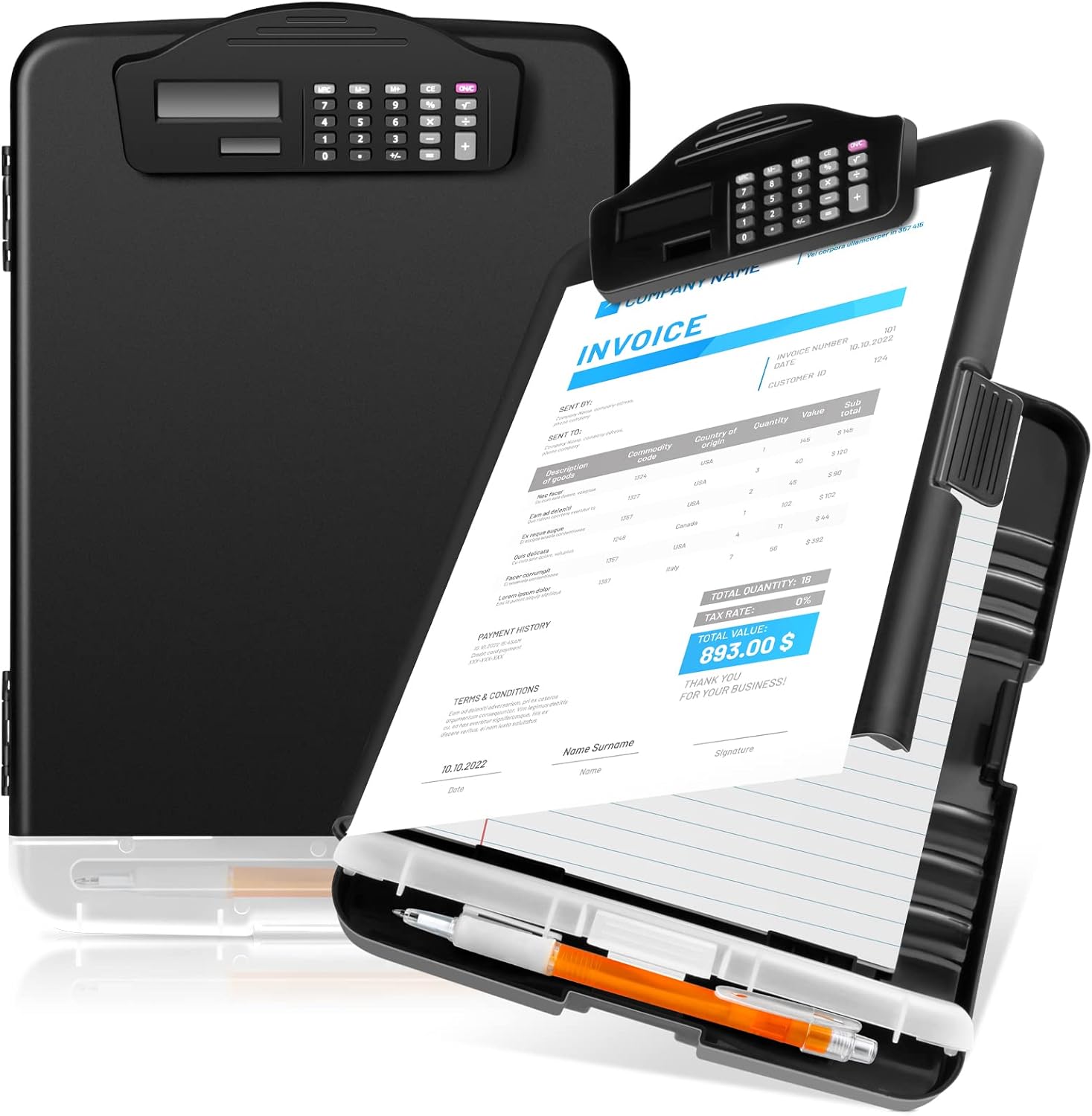 Geyoga 1 Pack Calculator Clipboard with Storage 14 x 10 x 2.6 Inches File Folder Plastic Storage Clipboard Letter Size File Folder with Low Profile Clip for School Classroom Office