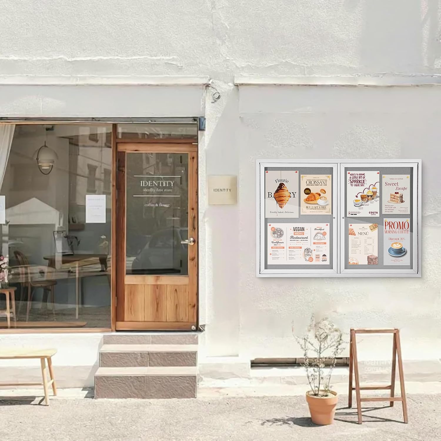 Outdoor Bulletin Board Weatherproof 48x36 in,Enclosed Bulletin Board with Locking Door, Wall Display Case for Office School Home Commercial, Silver Aluminum Frame, Gery Felt