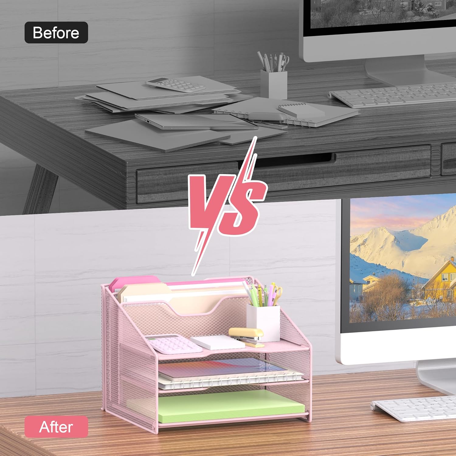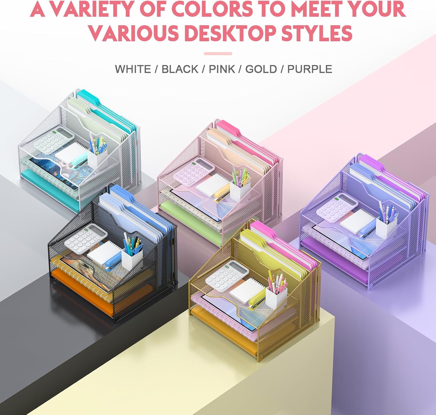 - Made of sturdy metal steel mesh with smooth edge and professional black finish, more durable and stable, strong enough to hold all your files and sundries.
