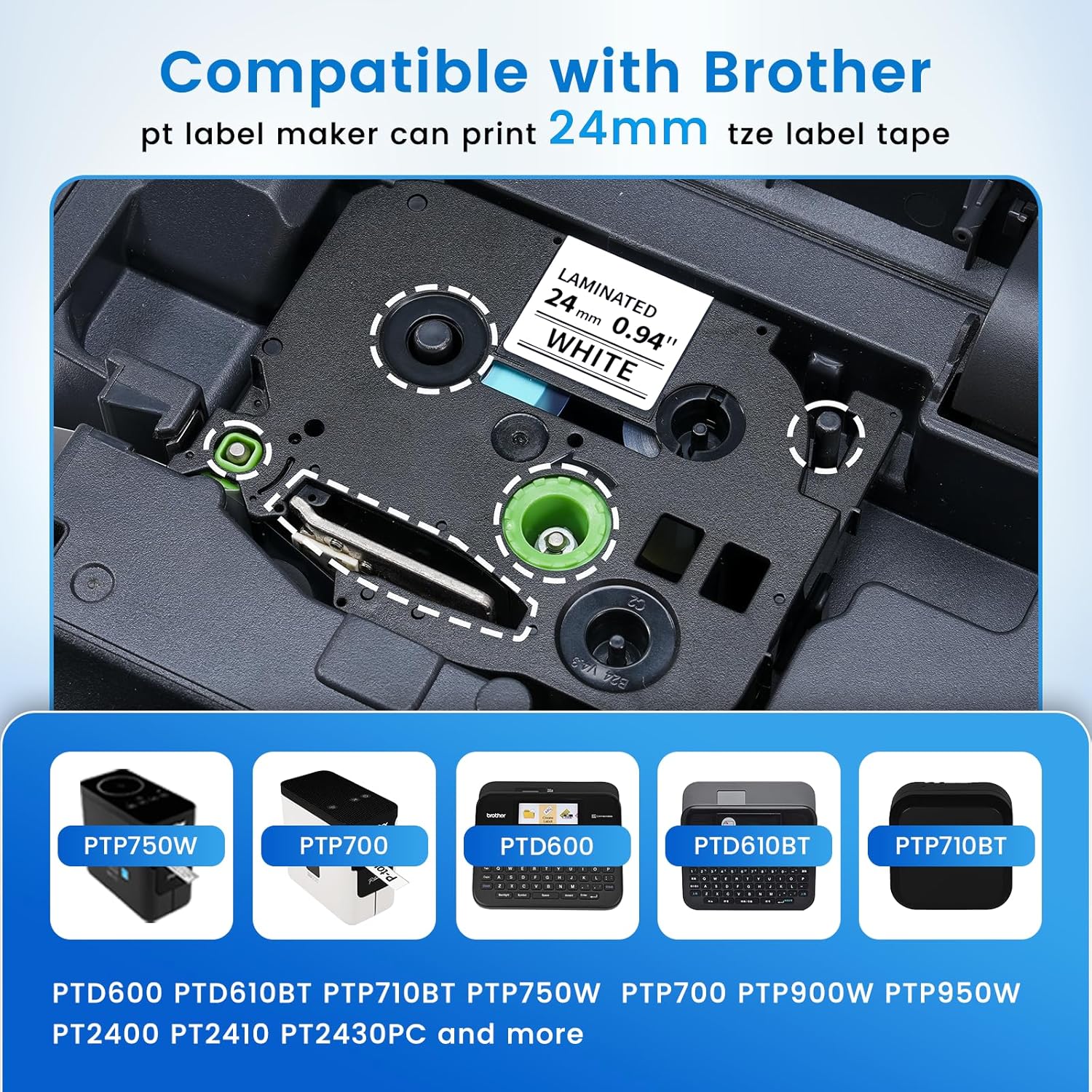 - Compatible with brother ptouch label maker (Max label width up to 24mm): PTD600 PTD610BT PT-P710BT PTP750W PTE500 PTE550W PTE800W PTH500LI PTP700 PTP900W PTP950W PT330 PT350 PT520 PT530 PT540 PT550 PT580C PT1400 PT1500PC PT1600 PT1650 PT2200 PT2210 PT2300 PT2310 PT2400 PT2410 PT2430PC PT2500PC PT2600 PT2610 PT2700 PT2710 PT2730 PT2730VP PT3600 PT7500 PT7600 PT9200DX PT9200PC PT9400 PT9500PC PT9600 PT9700PC PT9800PCN,etc.