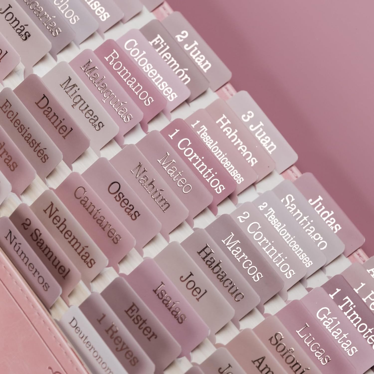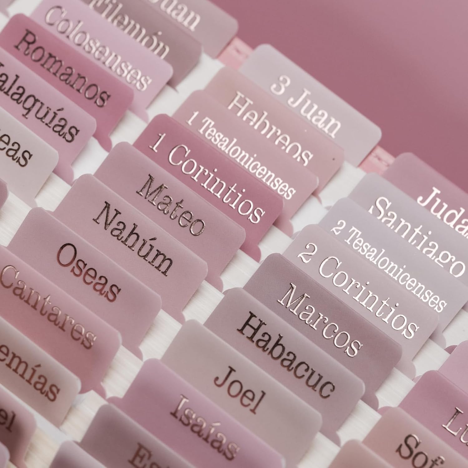 UPAFEXXI-Spanish Laminated Bible Tabs for Women and Men(Gold Foil Embossed Lettering) Pestañas de la Biblias, 80 Reposition Large Print tabs, Easy to Read and Apply(Pink)