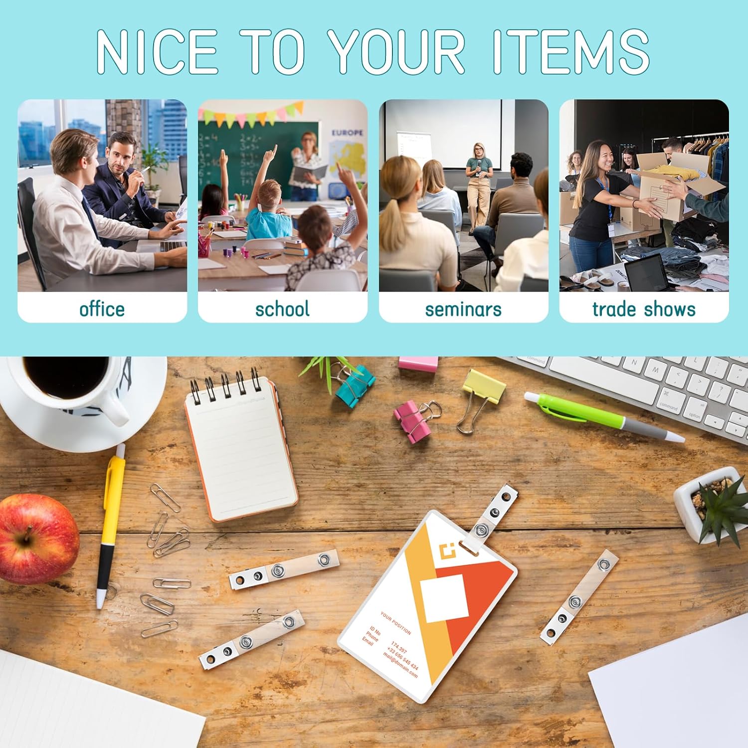 100Pcs Premium Metal Badge Clips with Clear PCV Straps, for ID Cards, Badge Holders, Name Tags, Work Badges