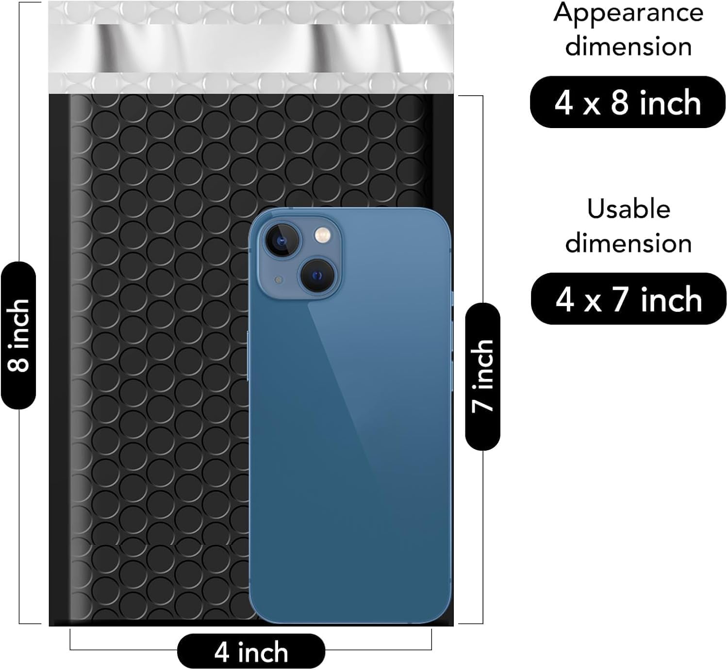 - Perfect Size 000 Black Bubble Mailers: The poly bubble mailers outer size is 4x8 inch, while the inner size is 4x7 inch. It is very suitable to transport for jewellery, makeup, cards, phone case, Lips, photos,handcraft and more. Great for small business packing,shipping gifts cushioning mailer.