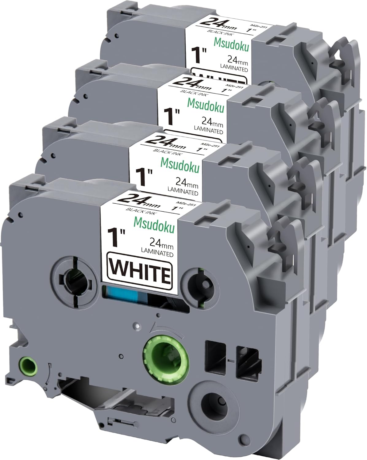 - Package Contents: 4PK 24mm MSUDOKU label tape cassettes (compatible with Brother TZE-251/TZ-251/TZ251 standards), each measuring 1" × 26.2 ft (24mm × 8m) with black print on white tape