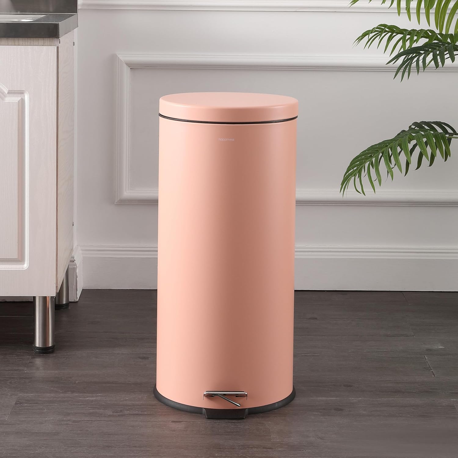 happimess HPM1000D Oscar 8-Gallon Step-Open Trash Can with Free Mini Trash Can, Modern, Fingerprint Proof for Home, Kitchen, Office, Large:7.9 Gallon Small:1.3 Gallon, Flamingo Pink