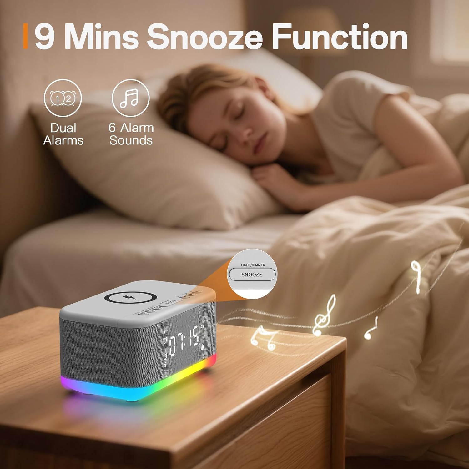 - Ready to Gift, Built to Impress: With premium packaging, this alarm clock for bedroom makes a perfect gift for holidays, birthdays, or housewarmings. this Bluetooth alarm clock with wireless charging includes everything: alarm clock for bedroom, adapter, AUX cable, manual, and quick guide. Perfect for birthdays or holidays. If you have any questions, please feel free to contact us