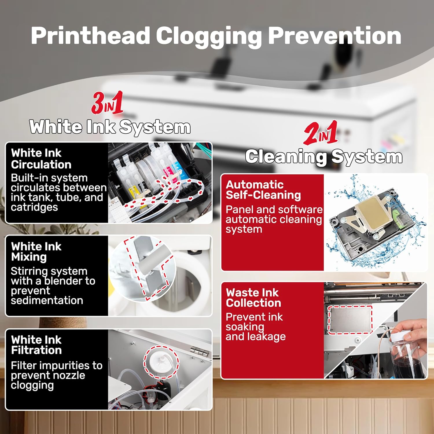 - ✅[Air Suction]Adjustable speed air suction system guarantees a seamless transfer film experience, effortlessly preventing wrinkles or warped edges during printing process. It could also avoid the printhead scratched by the DTF film, because the material on the film could corrode the printhead if they touch each other.