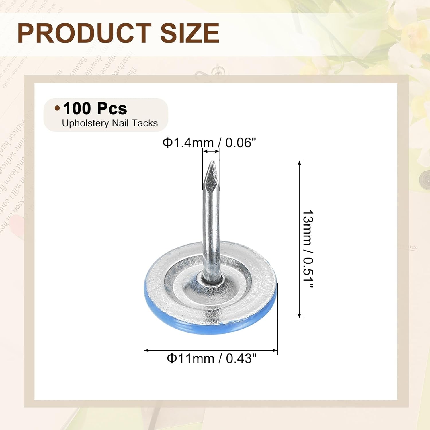 - [Size & Quantity] - The package comes with 100pcs decorative upholstery tacks. Sufficient quantity to meet your different daily needs. The overall size of upholstery nails is about 11mm x 13mm/0.43-inch x 0.51-inch(D*H)