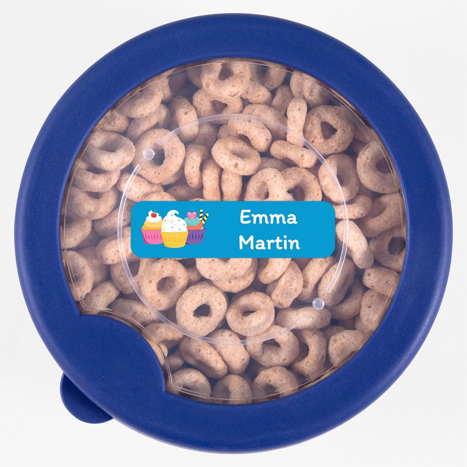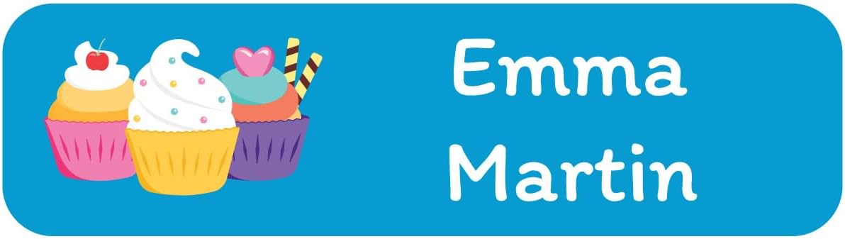Name Bubbles - Custom Small Rectangle Name Labels for Kids (64 Labels) - Personalized Waterproof Name Stickers for Daycare, Lunch Boxes, Water Bottles, Shoes, School Supplies, & Camp (Cupcakes)