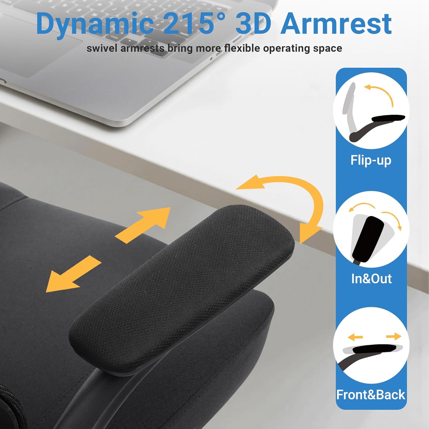 HYLONE Heavy Duty Office Chair, 5" Thickened Seat Ergonomic Desk Chair with Adjustable Armrests, Home Office Computer Chairs for Long Hours Mesh Executive Chair(Black)