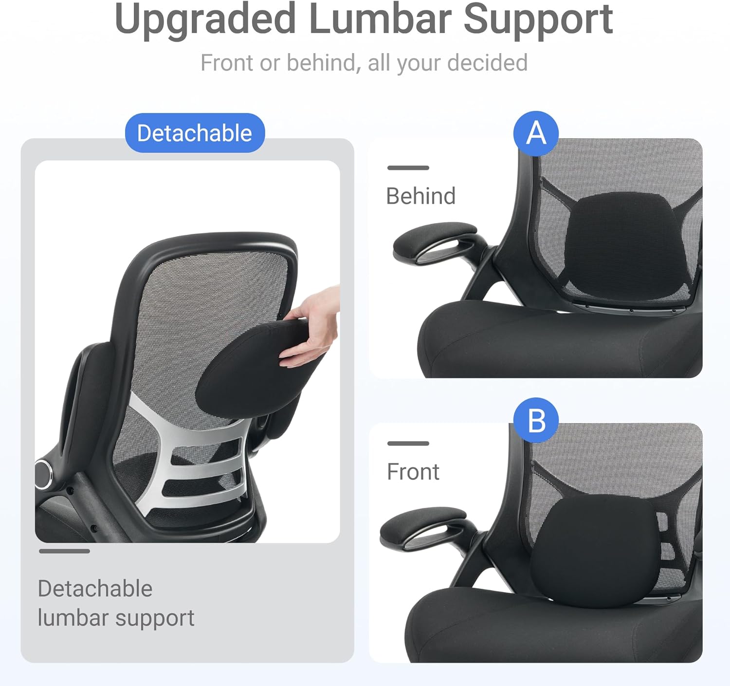 - 【Adjustable Office Chair】Our ergonomic office chair, designed to provide comprehensive assistance for your head, back, hips, and arms. Tailored lumbar support ensures your comfort and well-being. Suitable for people of about 5'5" to 6'2". Easily adjust seat height, backrest, and flip-up arms to cater to diverse needs, offering comfortable support during extended periods of sitting
