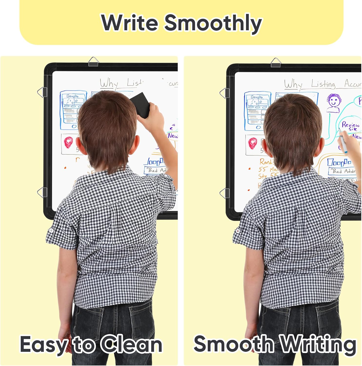 VUSIGN Monthly Dry Erase Calendar Whiteboard for Wall, 16" X 12" Double-Sided Board, Hanging Whiteboard Dry Erase for Office, Desk, Kitchen, Dorm, Black