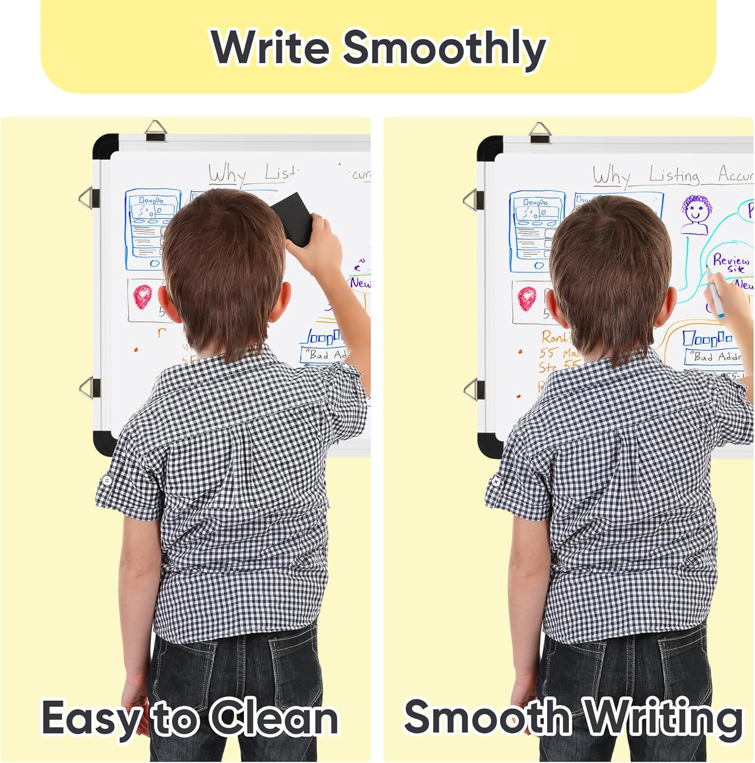 - Effortless to Write & Wipe: Our high-quality writing surface ensures smooth writing and easy erasing with no ghosting. Whether you're tracking tasks, appointments, or planning meals, this whiteboard calendar for wall makes organizing your life a breeze