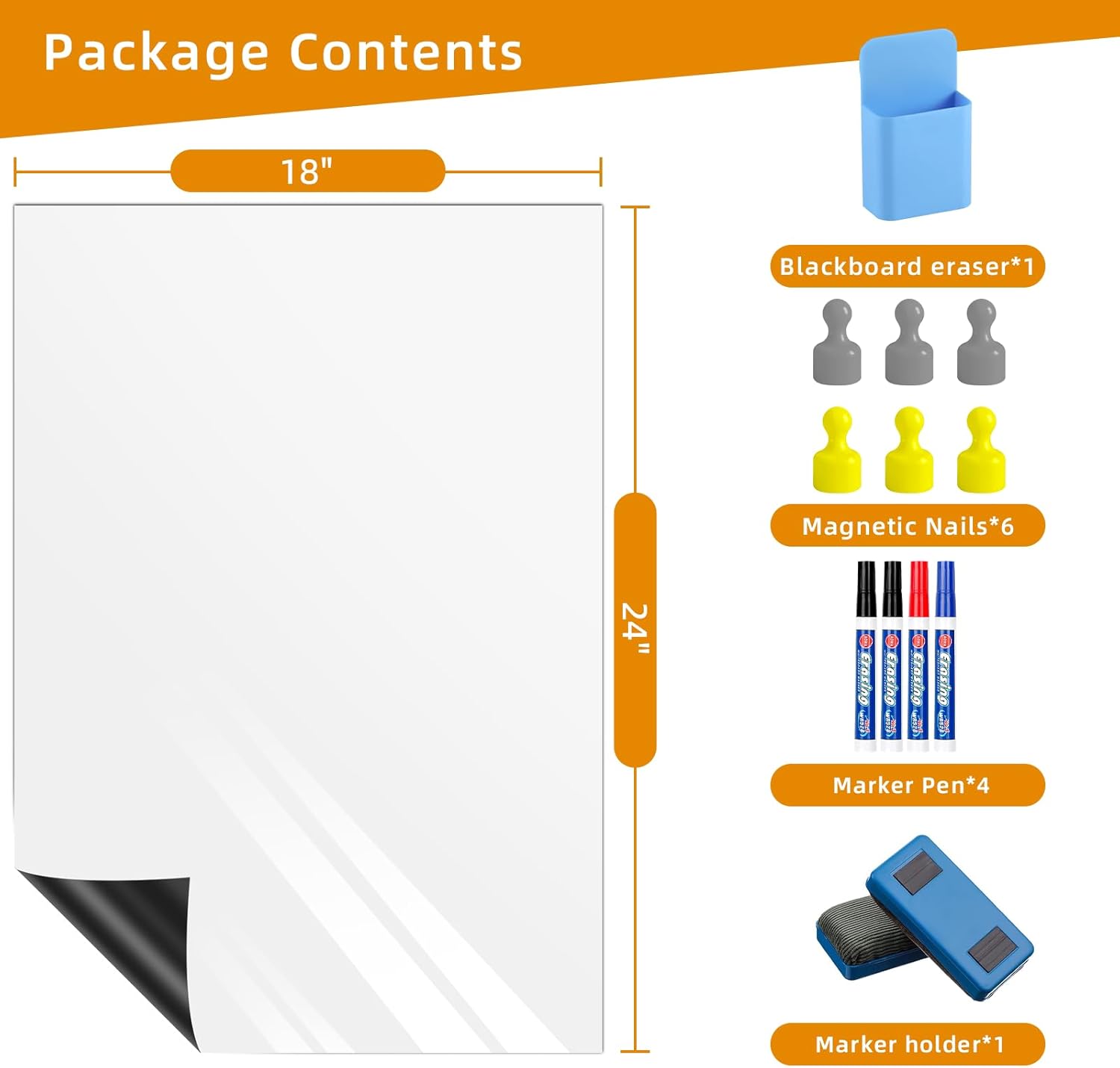 Magnetic Whiteboard Contact Paper, 18" x 24" Stick on Magnetic Dry Erase White Board Sticker on Wall, Easy to Write for Drawing, School, Office, Kitchen Fridge