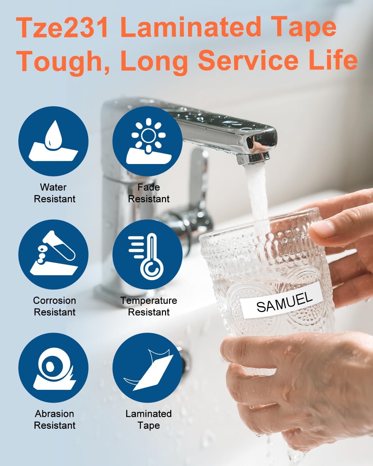 - Long-Lasting&Reliable: Compatible with Brother label maker tape P Touch TZe-231 has a laminated design that is resistant to water, oil, fade and temperature, saving you time and energy to replace it again.