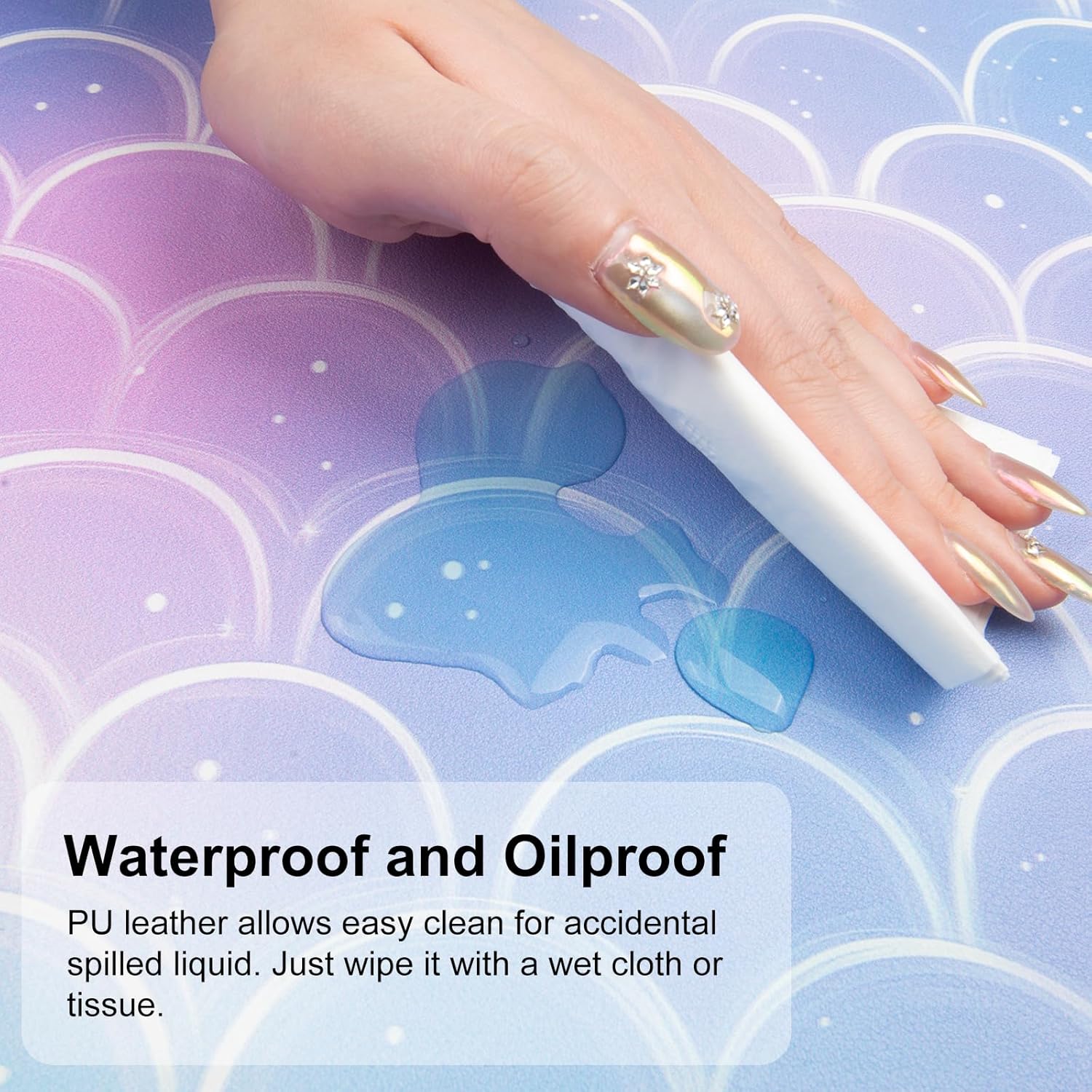 - Waterproof & Easy to Clean Desk Cover - Made of water-resistant and durable PU leather, this cute mousepad help prevent your desk from damages such as scratches, stains, spills and heat. Easy to clean, just wipe with a wet cloth or tissue.