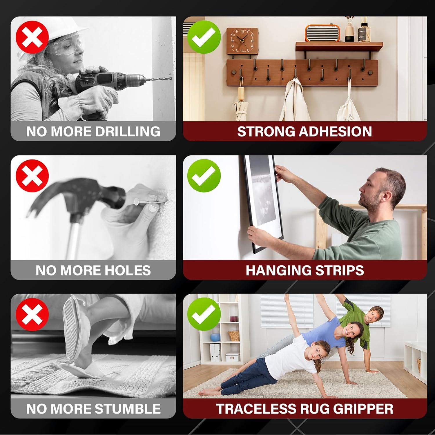 - ใ๐๐ข๐๐ ๐๐ฉ๐ฉ๐ฅ๐ข๐๐๐ญ๐ข๐จ๐งใ Suitable for a variety of smooth surfaces in the home, office, or outdoor settings. Perfect for mounting photos, hanging hooks, securing carpets, or fixing flower pots, phone holders, and more.
