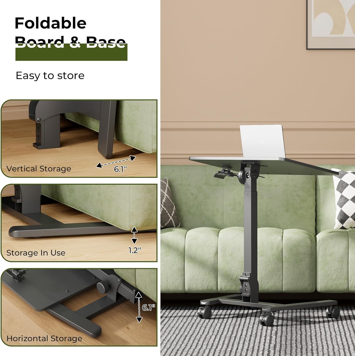 - Equipped with Hidden Wheels/4 Lockable Casters: A low-profile base with hidden wheels eases and tuck beneath furniture minimum 1.2" high to save space.You can replace the hidden wheels to 360 ° lockable casters according to your needs, which is more suitable on carpets. The lockable function avoids the table sliding.