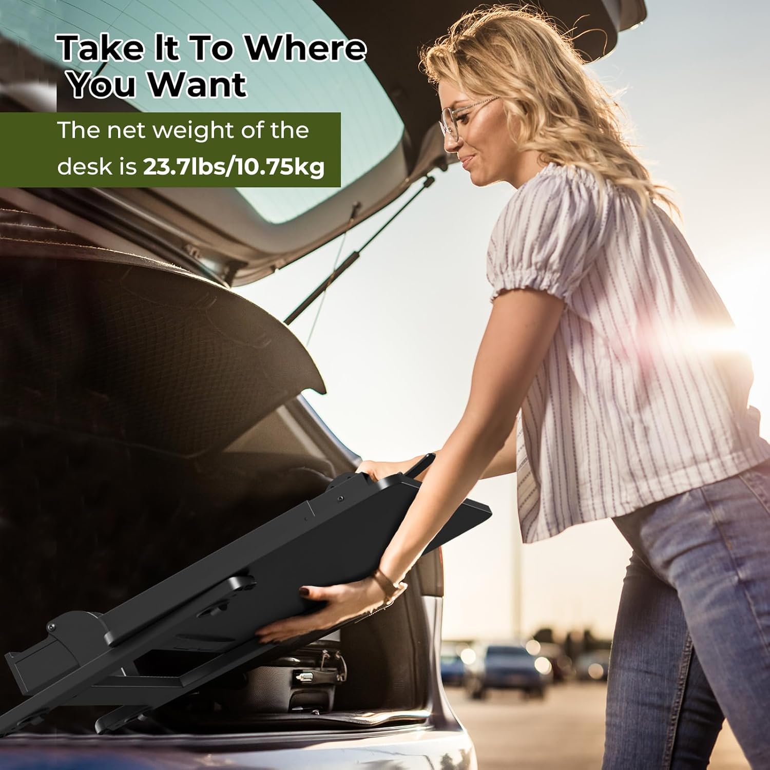 - No Assembly Required:You can use this workstation as soon as you open the packaging, without the hassle of installation. The net weight of the portable standing desk is 23.7lbs, and moving it is not very tiring.