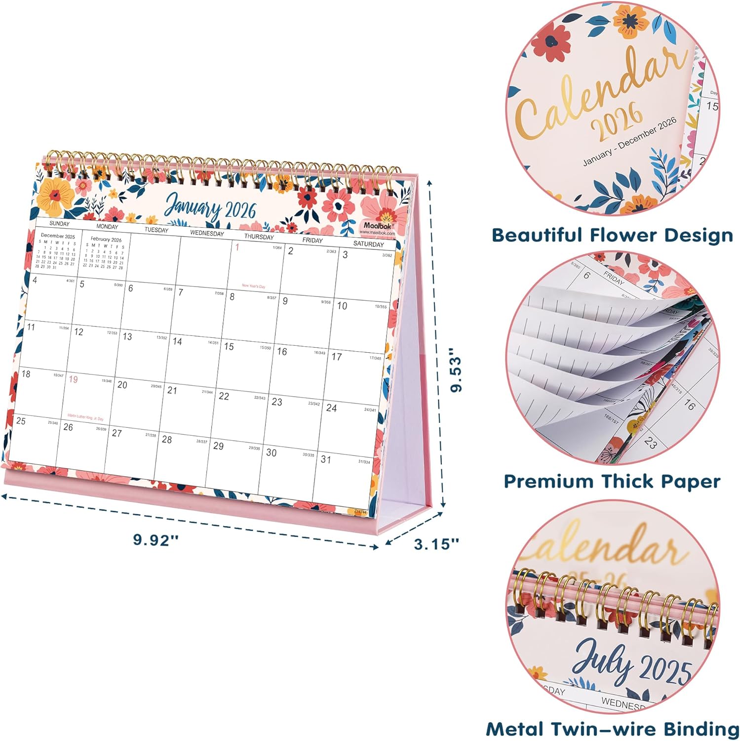 - πΌ PREMIUM PAPER - This desktop calendar 2026 uses premium and thick paper, can well avoid seepage and ink feathering, and give you a better writing experience. More, the metal strong Twin-Wire Binding can help you to flip this stand up calendar easily.