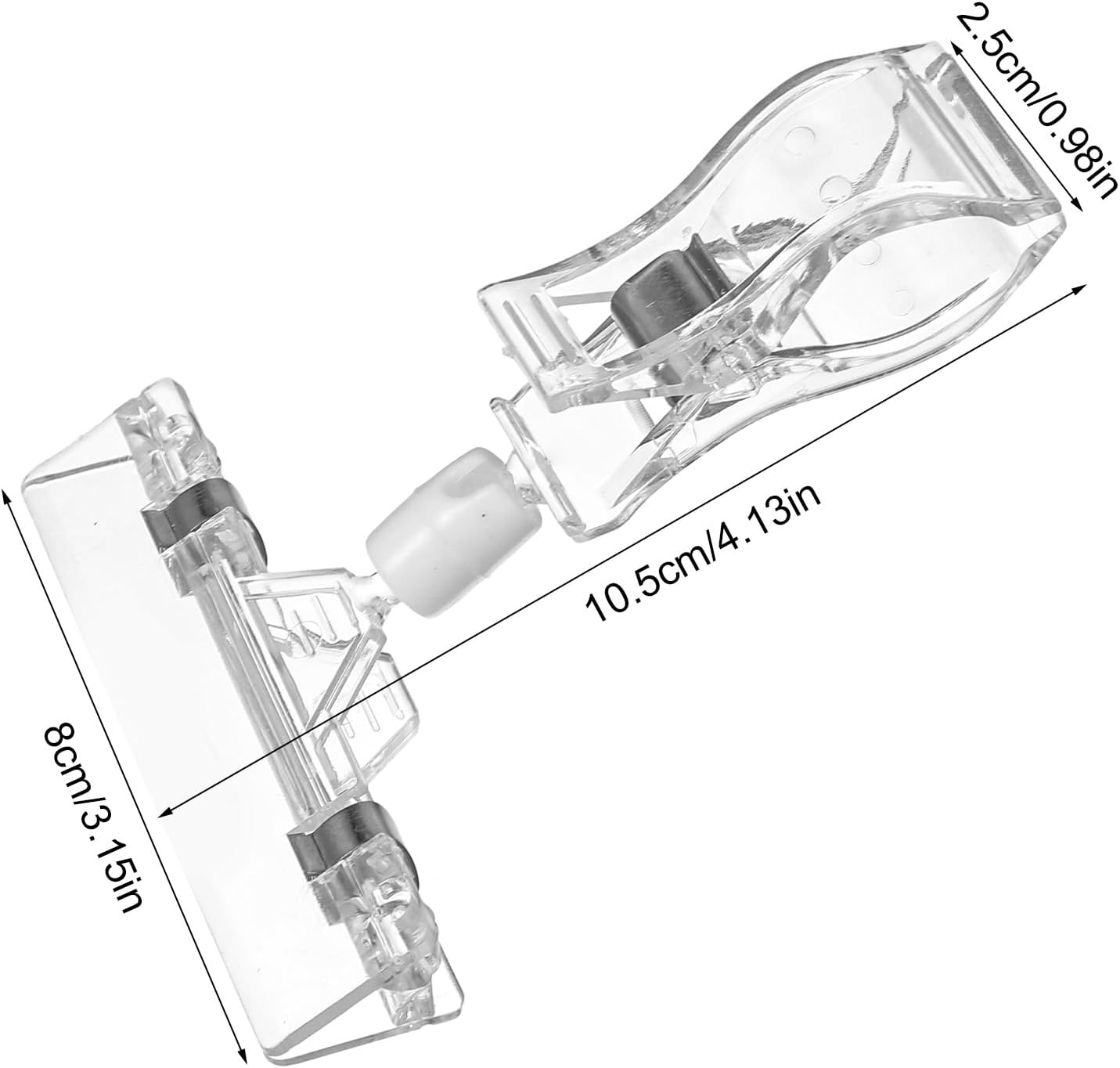 - Suitable Size: The base clip is suitable for cylindrical objects, plates, square tubes, partitions, round tubes, etc. Its maximum opening size is about 1.18 inches/3 cm. The horizontal clip is for the price sign, and its maximum opening size is about 0.39 inches/1 cm. They seamlessly blend into any display, keeping the focus on your products.